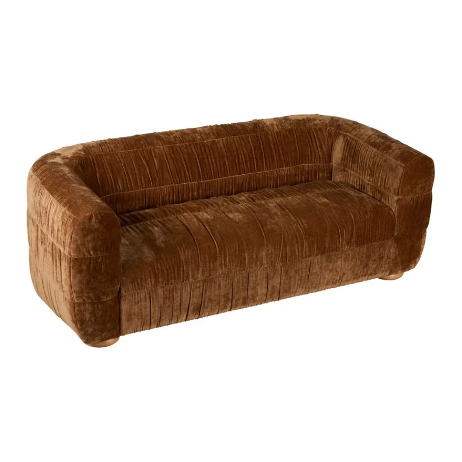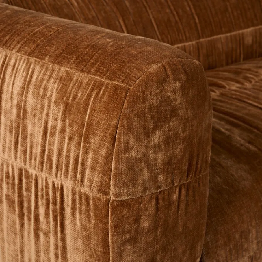 De bank is bekleed met een zachte chenille stof. Dit materiaal is gemaakt van 100% polyester en hiermee is het sterk en goed kleurvast. De kleur Bronze is een rijke bruintint die makkelijk combineert en de vleug zorgt voor een elegante kleurnuance.