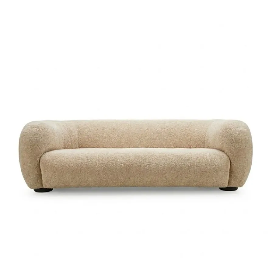 De bank is bekleed met een mooie en sterke stof van 100% polyester in een tijdloze crème kleur. Dit materiaal met teddy achtige structuur geeft de bank een chique, maar toch huiselijke uitstraling die makkelijk te combineren is met jouw interieur. De stevige poten van rubberhout in de kleur Rustic Charcoal maken het geheel helemaal af.