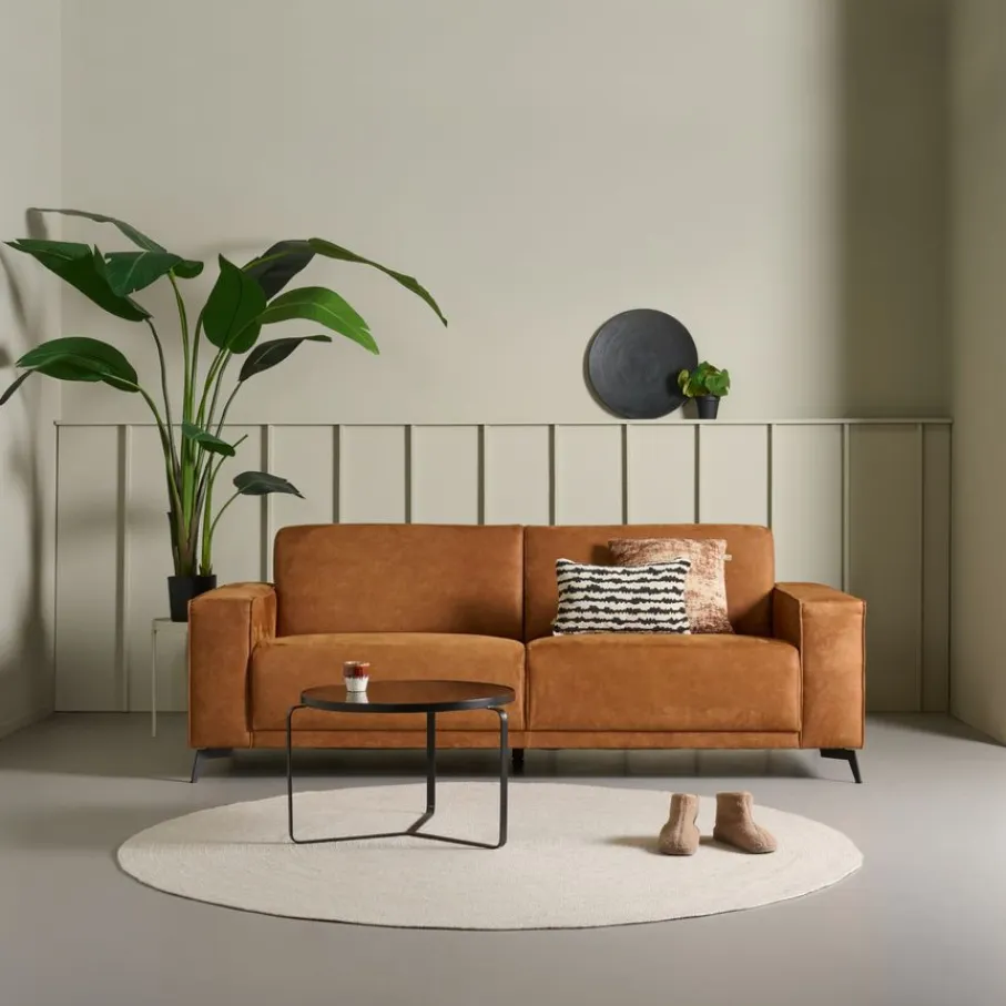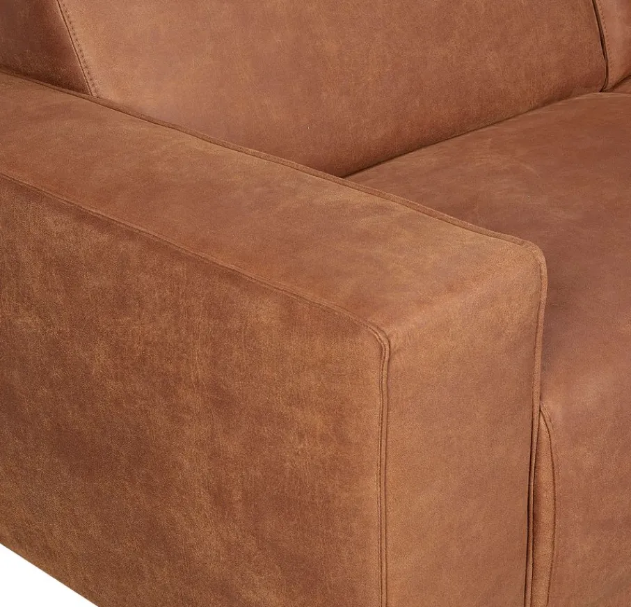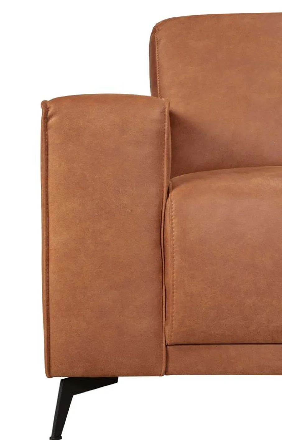 - De stoere microleder bekleding geeft de bank een robuuste en luxe uitstraling, én voelt verrassend zacht aan.