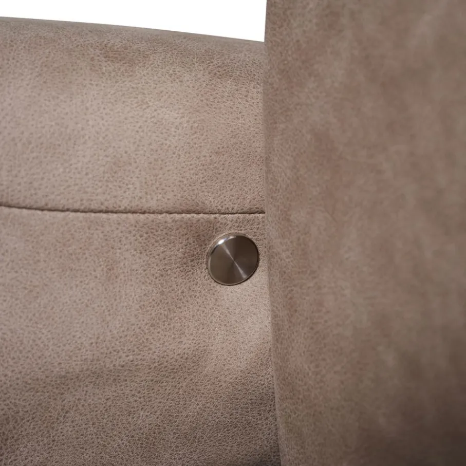 De bank is bekleed met stof Magnum, een microvezel stof met een suède lederlook. Het heeft een rijke vleug en voelt heerlijk zacht aan. Dit geeft een warme uitstraling aan de bank en bovendien is de stof sterk. De kleur Clay is een grijs/bruine tint die makkelijk combineert.