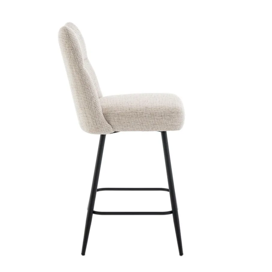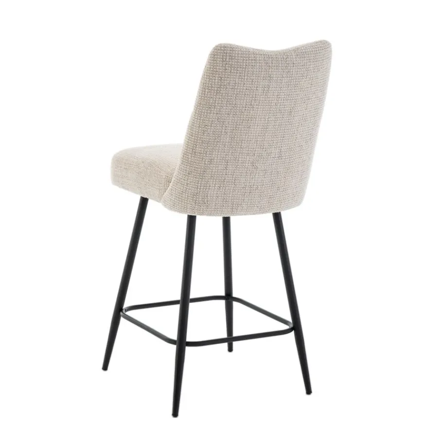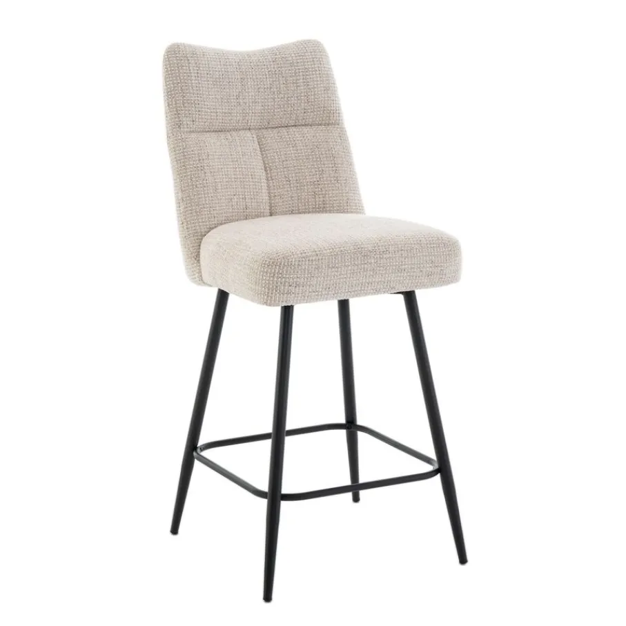 Barkruk Becca is bekleed met een prachtige textielstof in een warme crème kleur. Deze neutrale tint past naadloos in vrijwel elk interieur en geeft je ruimte direct een lichte en open uitstraling. De zwarte metalen poten vormen een mooi contrast en zorgen voor een strakke, moderne touch.