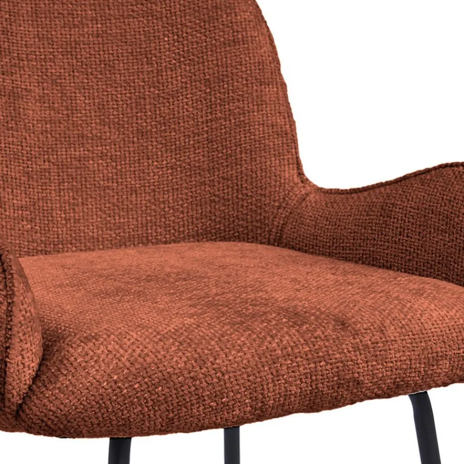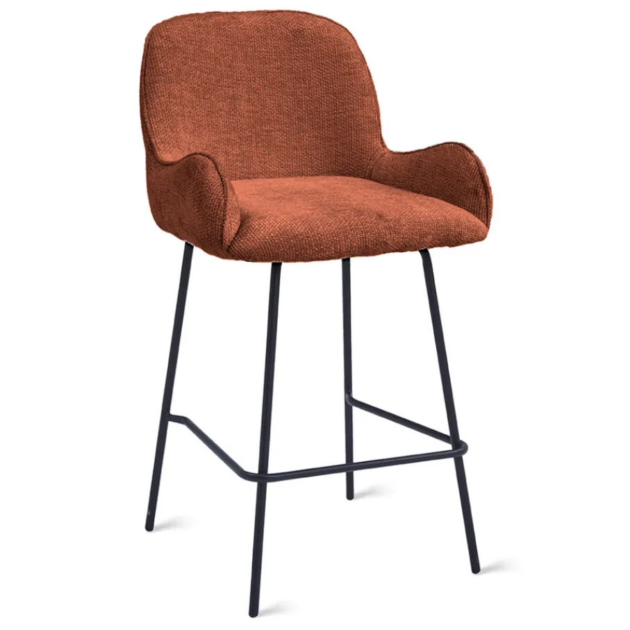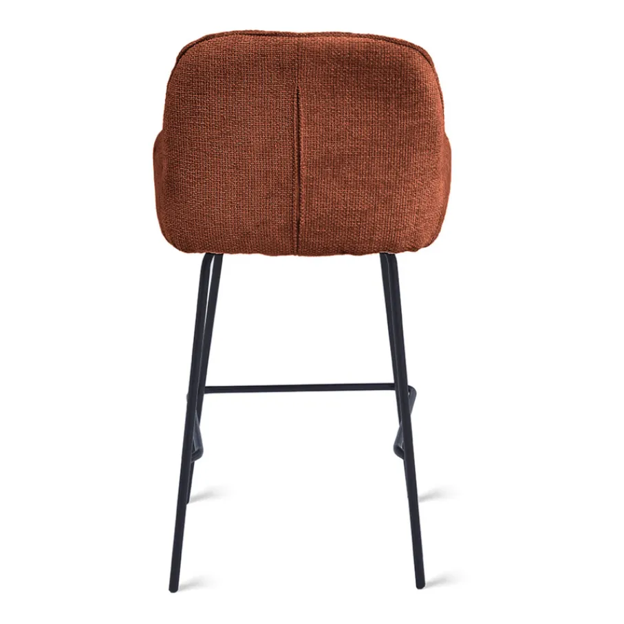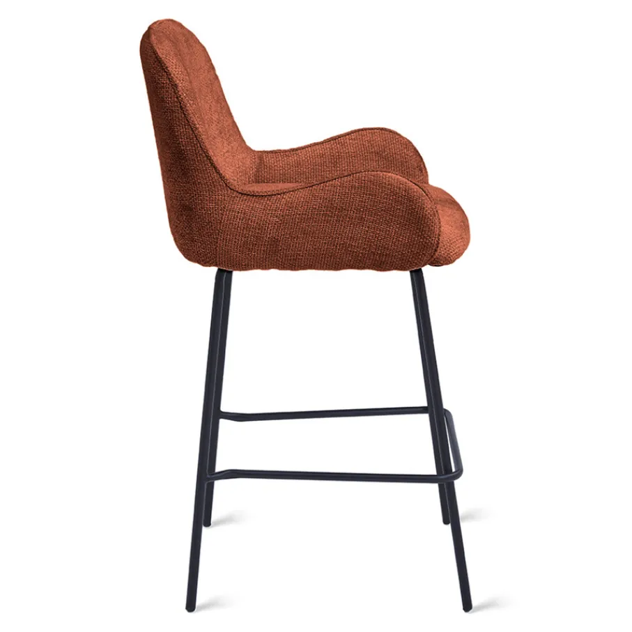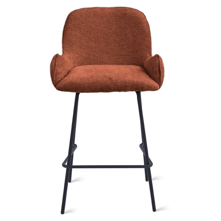 De bekleding van barkruk Berend heeft een geweven structuur en voelt heerlijk zacht aan. Deze Haga stof is gemaakt van 100% polyester en heeft een Martindale van 60.00. Hiermee is het een sterk en slijtvast materiaal. De roest kleur is een rood/bruine tint.