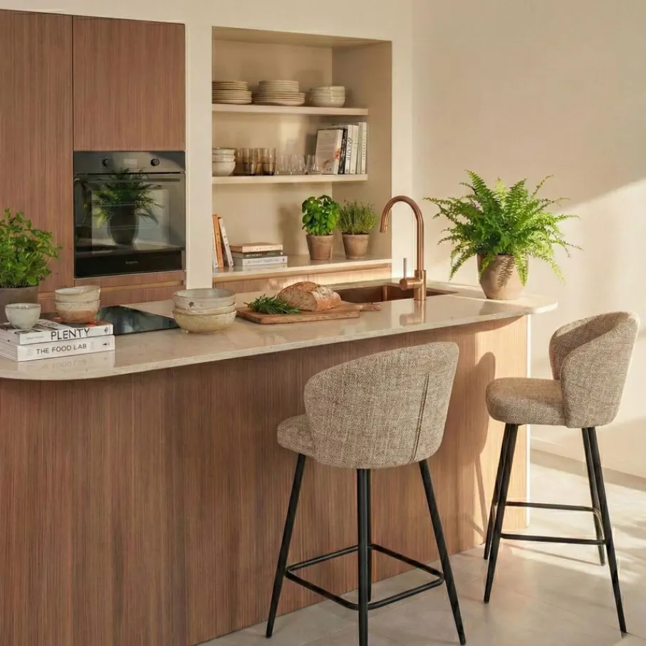 - Vaste zithoogte: De zithoogte van 66 cm is ideaal voor de meeste kookeilanden en hogere tafels, en zorgt voor een stabiele zit.