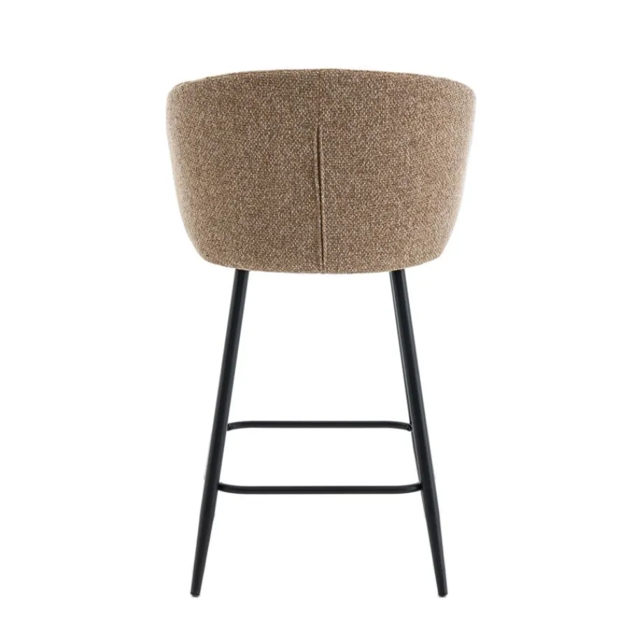 De bekleding in een trendy mosterdbruine kleur is niet alleen een lust voor het oog, maar voelt ook nog eens heerlijk aan. De warme tint zorgt voor een uitnodigende sfeer en past perfect bij verschillende interieurstijlen, van modern tot industrieel. De zwart metalen poten maken het plaatje helemaal af en geven de kruk een stoere uitstraling.