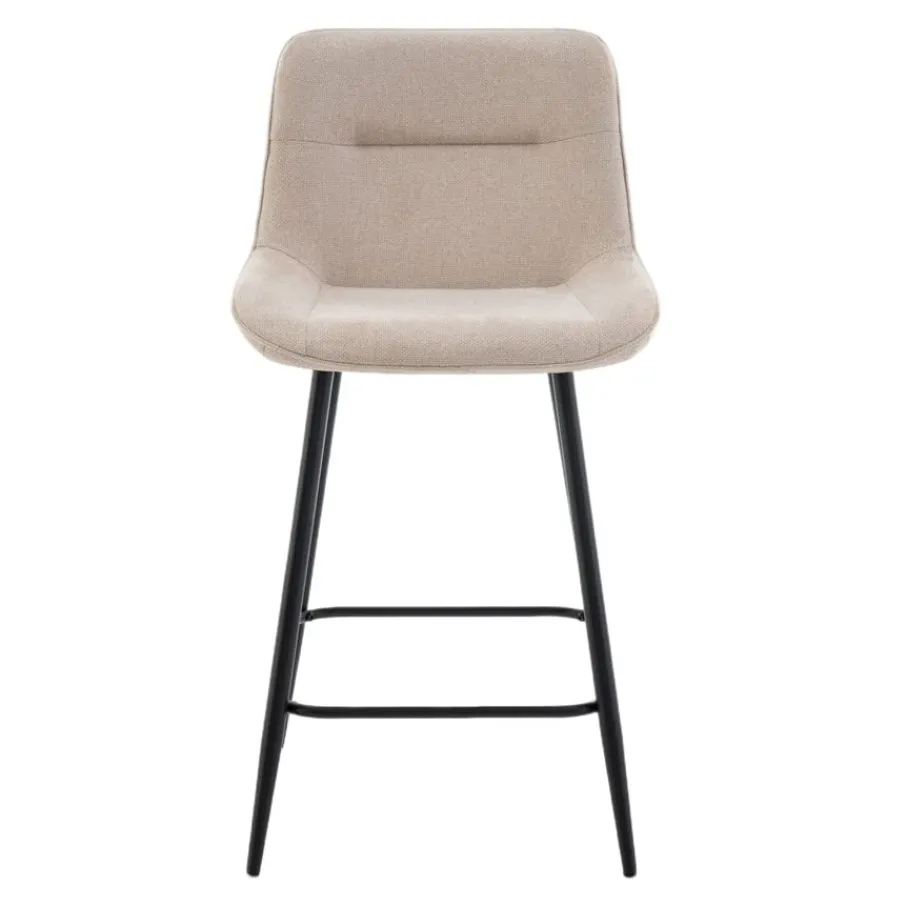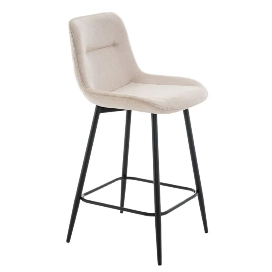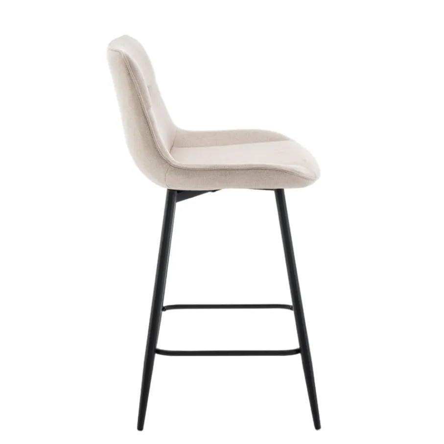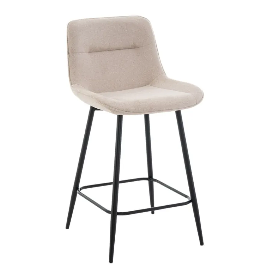 Geef jouw keuken of bar een stijlvolle upgrade met barkruk Fay! Deze fijne barkruk, bekleed met een zachte structuurstof in trendy crème kleur, straalt pure gezelligheid uit. De combinatie met de stoere zwarte metalen poten geeft barkruk Fay een moderne en toch warme uitstraling. Perfect voor lange, gezellige avonden aan het eiland of een snelle koffie in de ochtend.