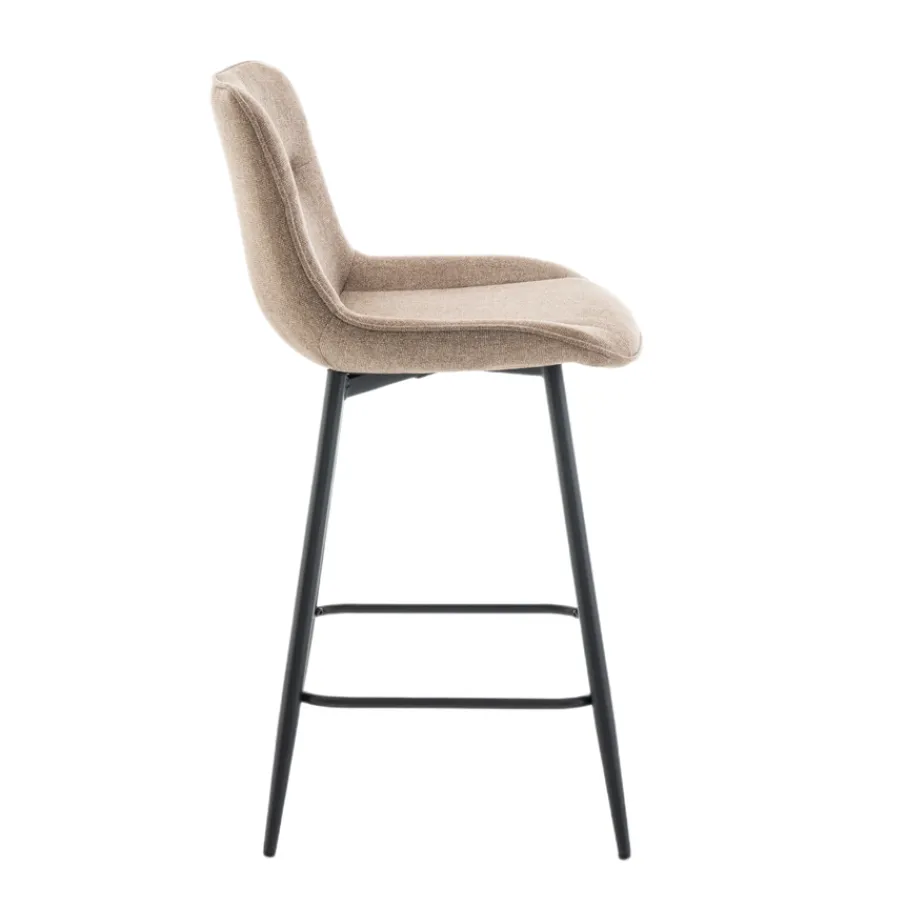 De bekleding van barkruk Fay heeft een prachtige taupe tint met fraaie kleurnuances. Het zachte textiel voelt niet alleen prettig aan, maar de rijke structuur is ook een lust voor het oog. Deze neutrale kleur is supermakkelijk te combineren en geeft je interieur meteen een serene en chique uitstraling. Een tijdloze keuze waar je jarenlang plezier van hebt!