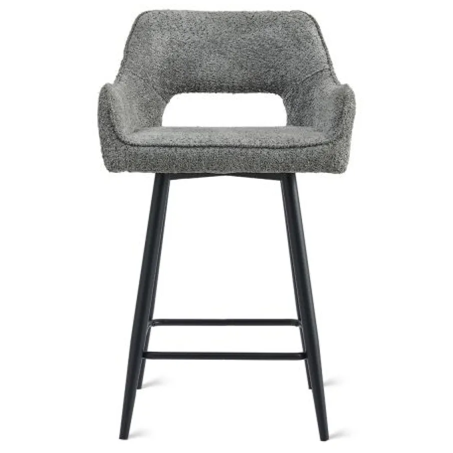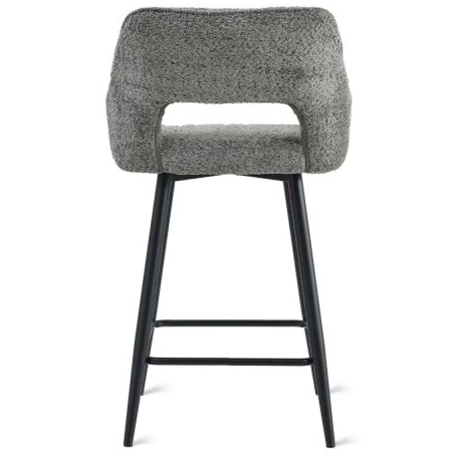 De zachte bekleding omhult barkruk Kegan en geeft je het gevoel van luxe. De stof heeft een rijke, weelderige structuur en zorgt voor een sfeervolle look. De antraciet grijze kleur is modern en goed te combineren.