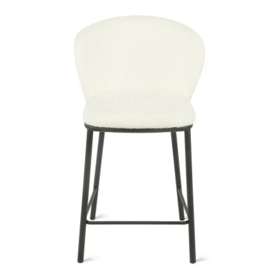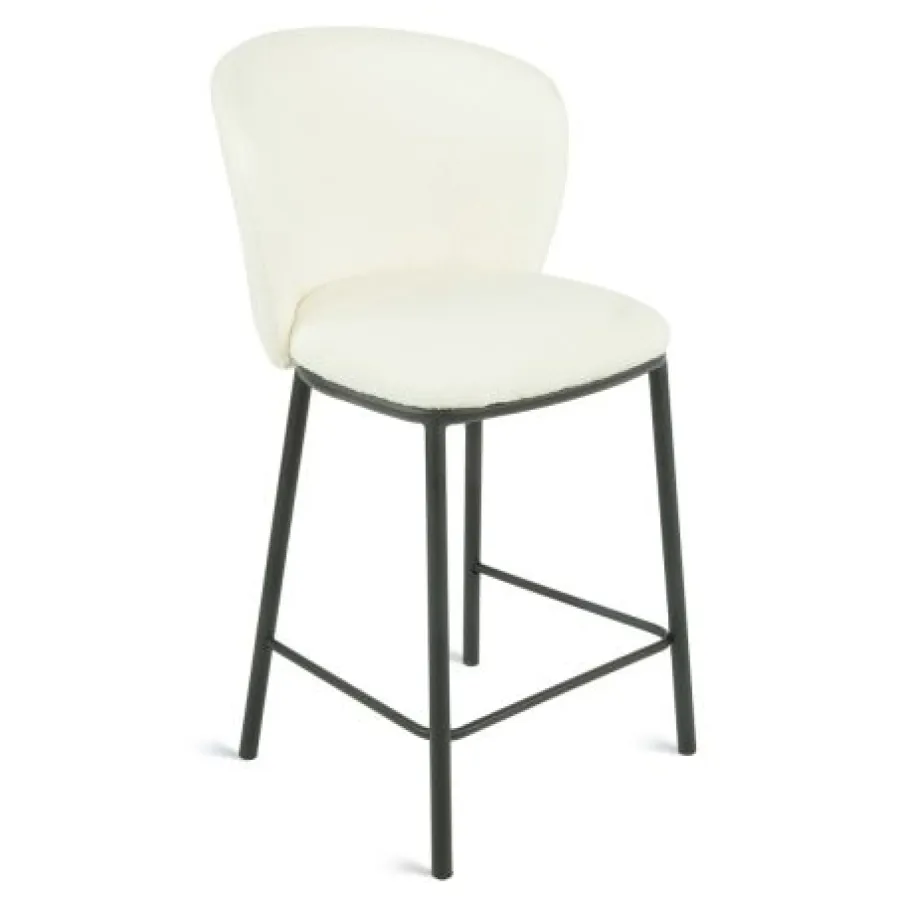 De barkruk is bekleed met bouclé stof, gemaakt van 95% polyester en 5% wol. Dit materiaal heeft een rijke structuur, is heerlijk zacht en de ivoorkleur is makkelijk te combineren.