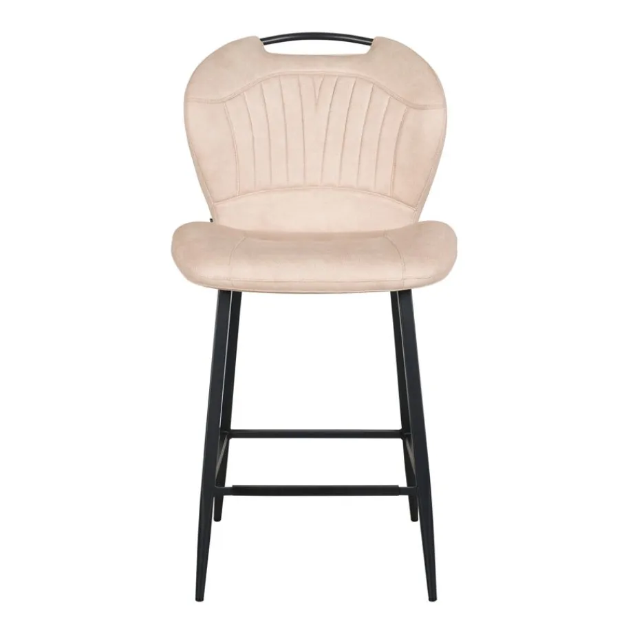 Barkruk Lenno is bekleed met stof Luxor in kleur Sand. De zachte microvezel bekleding heeft een fijne structuur en doet denken aan vintage leder. De beige kleur is een lichte, neutrale kleur die prachtig staat in veel interieurs. Het geeft de kruk een warme en uitnodigende uitstraling. De ranke poten van zwart metaal zorgen voor een mooi contrast en maken het ontwerp helemaal af, waardoor barkruk Lenno zowel robuust als elegant oogt.