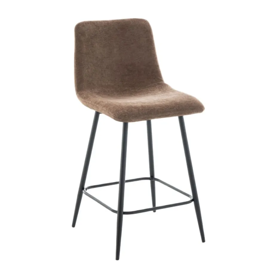 De Nora barkruk is bekleed met een prachtige stof met een chenille weving. Deze bekleding van 100% polyester voelt niet alleen heerlijk zacht aan, maar is ook nog eens perfect voor intensief woongebruik. De diepe bruine kleur geeft de kruk een rijke en warme uitstraling die perfect past in diverse interieurstijlen.