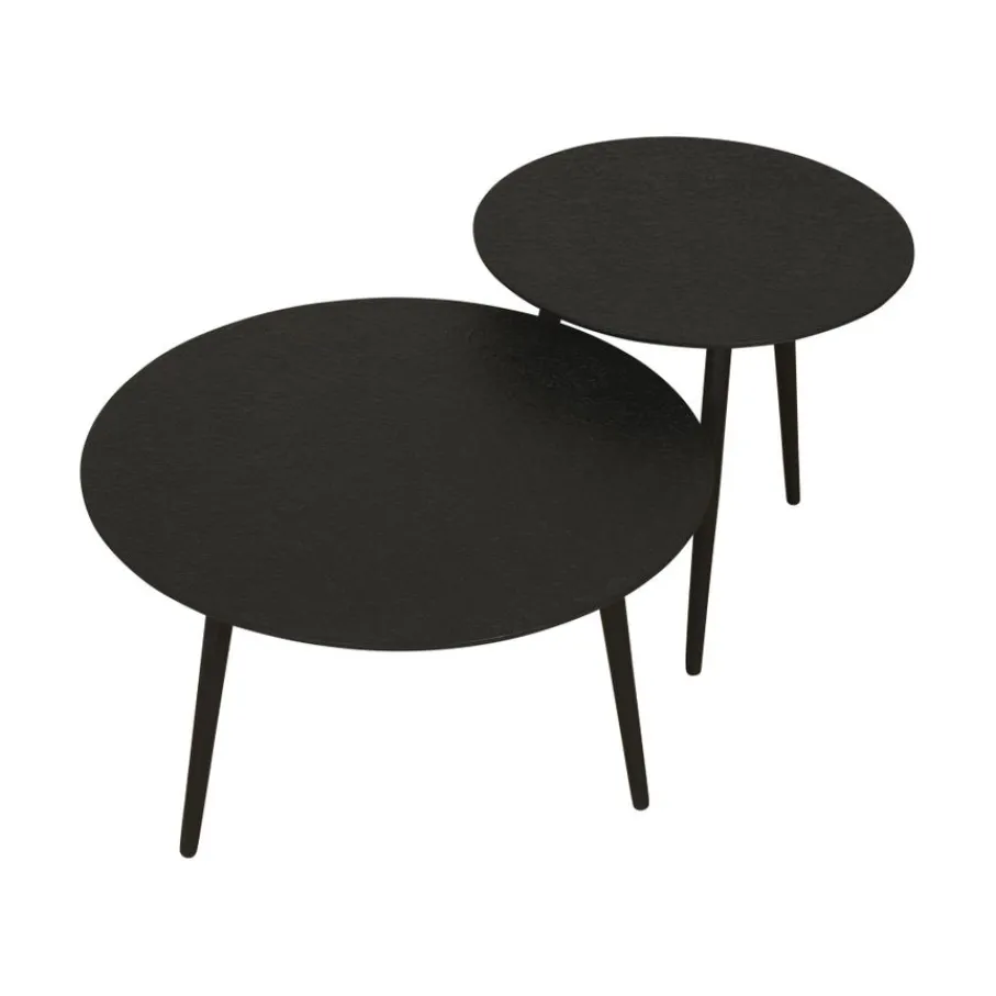 De Avignon bijzettafels is een set tafels die gecombineerd met elkaar een fijn formaat hebben. Behalve de afmeting zijn ook de looks uitzonderlijk. De tafelbladen zijn rond en gemaakt van liquid metal in zwarte kleur. Hierdoor heeft het blad en robuuste structuur. Een look die modern en minimalistisch is. De set past perfect bij een hoekbank of mooi om een decoratieve hoek in de woonkamer te creëren.