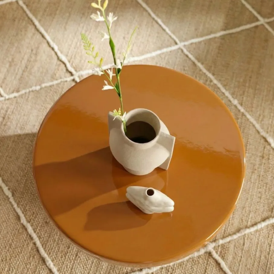 Met bijzettafel Cones in aardse bruintint haal je direct een warme en trendy blikvanger in huis! Deze ronde tafel van metaal met een hoogglans afwerking voegt moeiteloos sfeer toe aan elke zithoek. Ideaal voor die mooie plant, je favoriete drankje of een goed boek. Combineer ‘m met andere meubels en creëer zo jouw eigen gezellige plekje. Zoek jij een handig én stijlvol item, dan is bijzettafel Cones precies wat je zoekt.