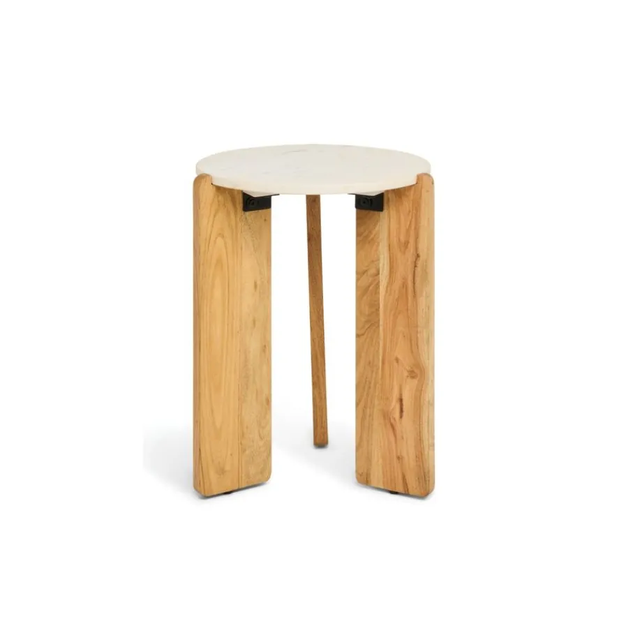- Warmte en elegantie in één: Het prachtige marmeren blad in combinatie met de warme acaciahouten poten zorgt voor een luxueuze uitstraling die jouw interieur direct omtovert.
