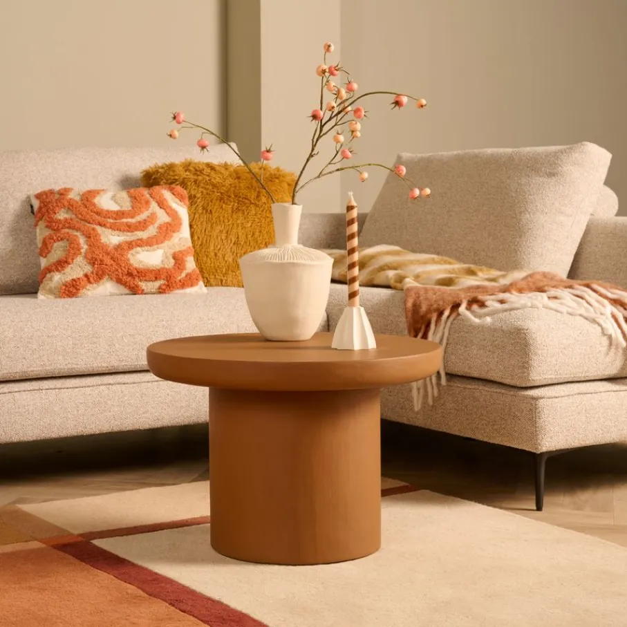 - Een echte eyecatcher voor je interieur: Met zijn ronde vorm en unieke kalkpleister finish in een aardse bruine kleur geeft bijzettafel Salzburg direct een stijlvolle en robuuste look aan elke ruimte.