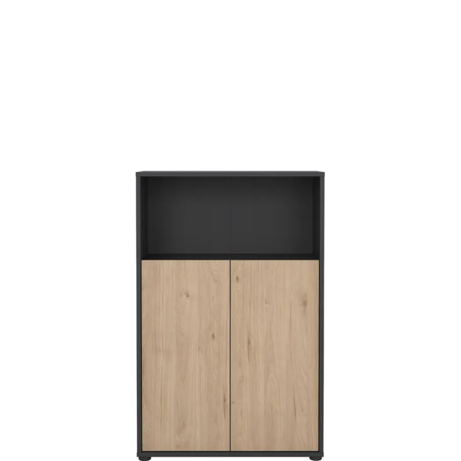 Boekenkast Bram heeft twee dichte vakken, ideaal om spullen uit het zicht te bewaren. De twee deurtjes zorgen voor een opgeruimde uitstraling en ze zijn greeploos, wat zorgt voor een minimalistische look. Het open vak daarboven biedt plek voor boeken of deco die je graag in het zicht wilt hebben.
