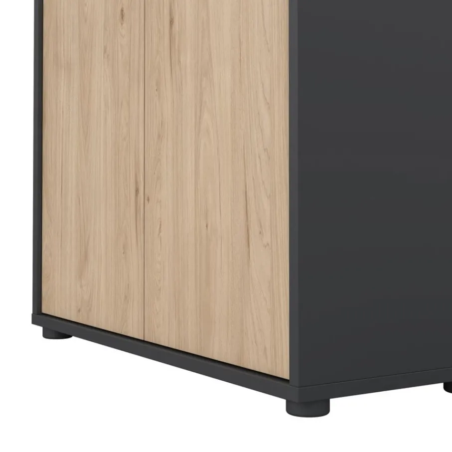 - Geef je interieur een moderne boost met de stijlvolle combinatie van donkergrijs en de warme eiken houtlook, perfect voor een eigentijdse sfeer.