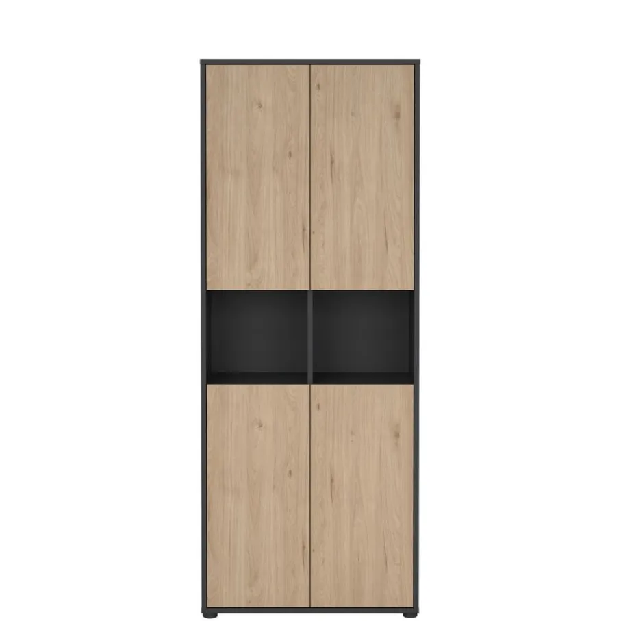 - Donkergrijs met accent in eiken houtlook