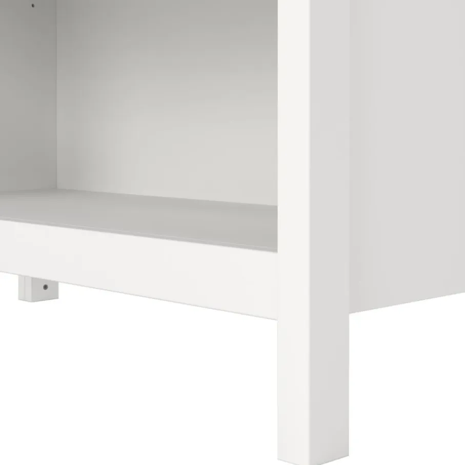 - Deze kast staat stevig en chic op zijn witte poten, wat zorgt voor een ruimtelijk effect en een eigentijdse look in elke kamer.
