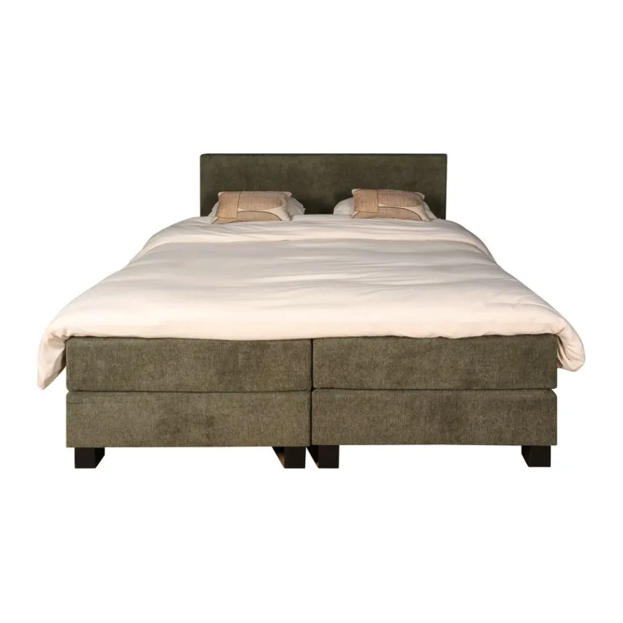 Boxspring Valencia is bekleed met stof Mito. Dit is een fluweelzachte stof van 100% polyester met een wafelachtige structuur. Een sterk materiaal dat niet snel verkleurd. De kleur is Hunter, een mooie natuurlijke groene tint. De matrassen en het topmatras hebben afritsbare hoezen.