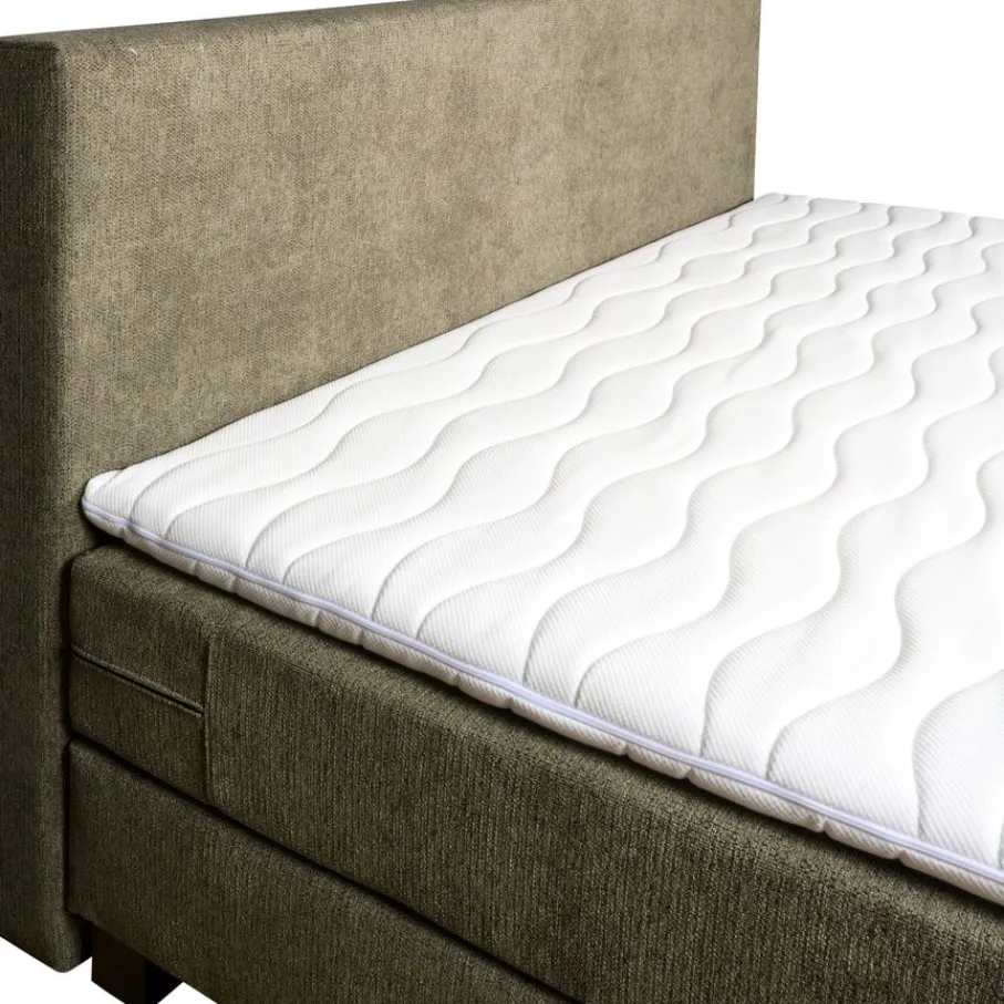De boxspring bestaat uit 2 boxen met een duurzame en stevige bonell vering. Daarop liggen matrassen met pocketvering, dat zorgt voor een goed ventilerend vermogen. Om het comfort af te maken ligt daar een topmatras op met een HR schuimvulling, een materiaal met een grote veerkrachtigheid. Het topmatras is 6 cm dik. We adviseren je om de matrassen en topper regelmatig om te keren. Hierdoor blijven ze langer fris en behouden ze beter hun stevigheid en comfort.
