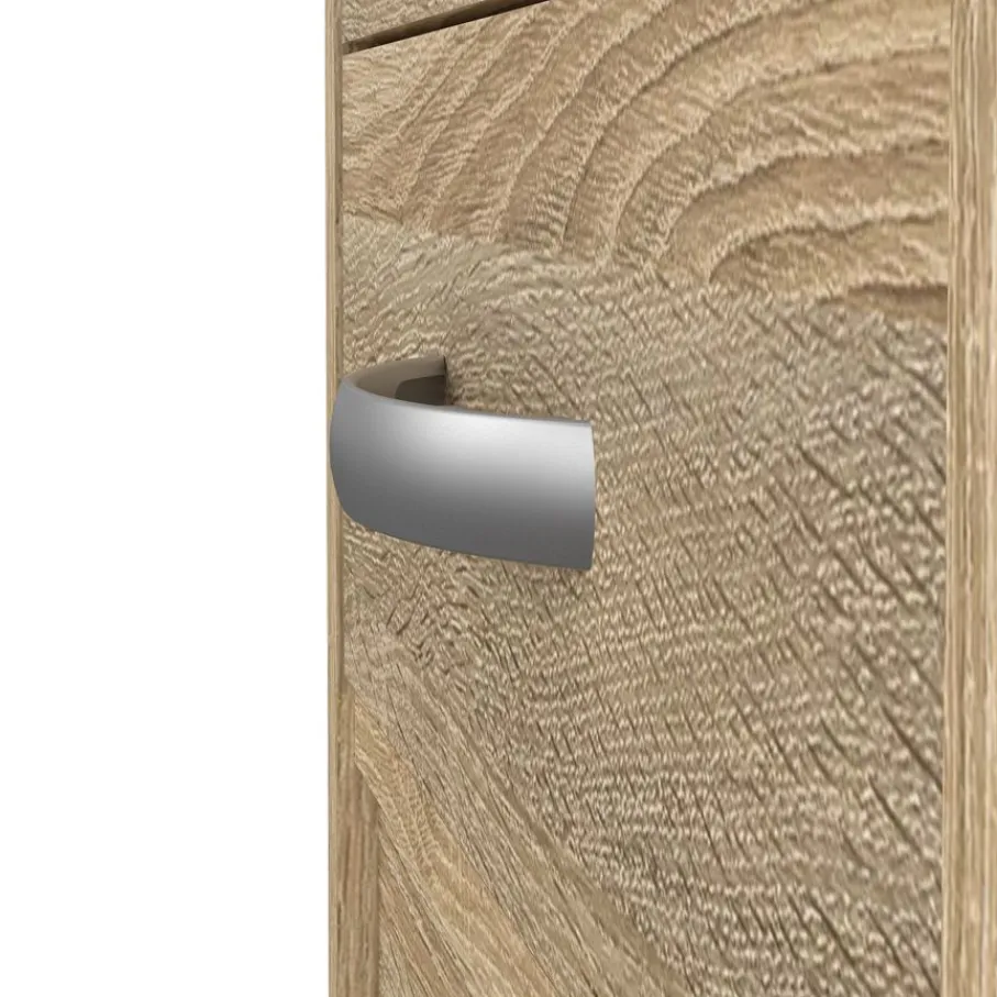 - Geef je interieur een frisse, moderne boost met het strakke design, de warme eiken houtlook en de chique RVS-look handgrepen.