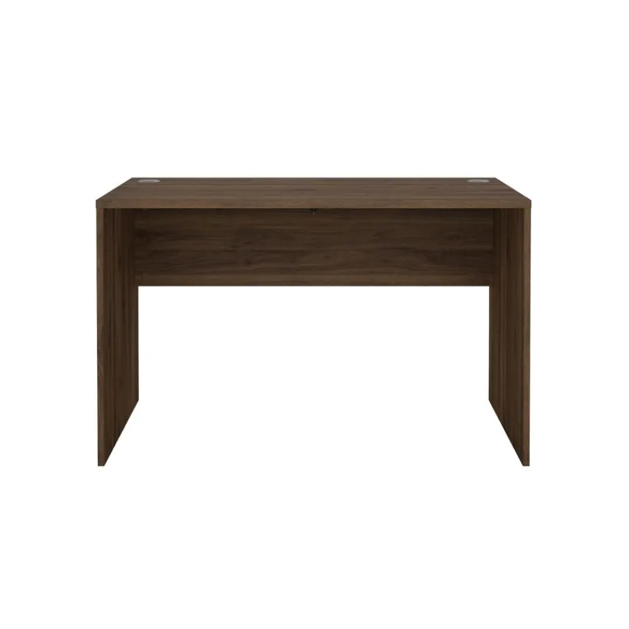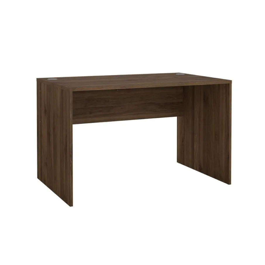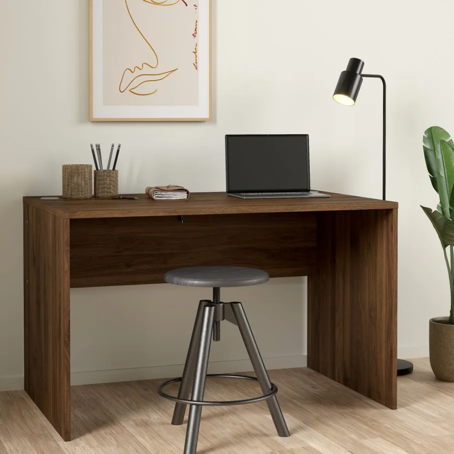 - Creëer direct een sfeervolle en moderne werkplek met dit strakke bureau in een warme walnoot houtlook.