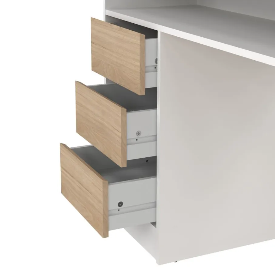 - Creëer een opgeruimde werkplek dankzij de slimme mix van drie lades, een gesloten vak met slot én een handig open vak onder het blad.