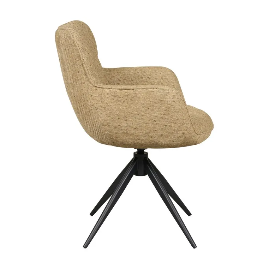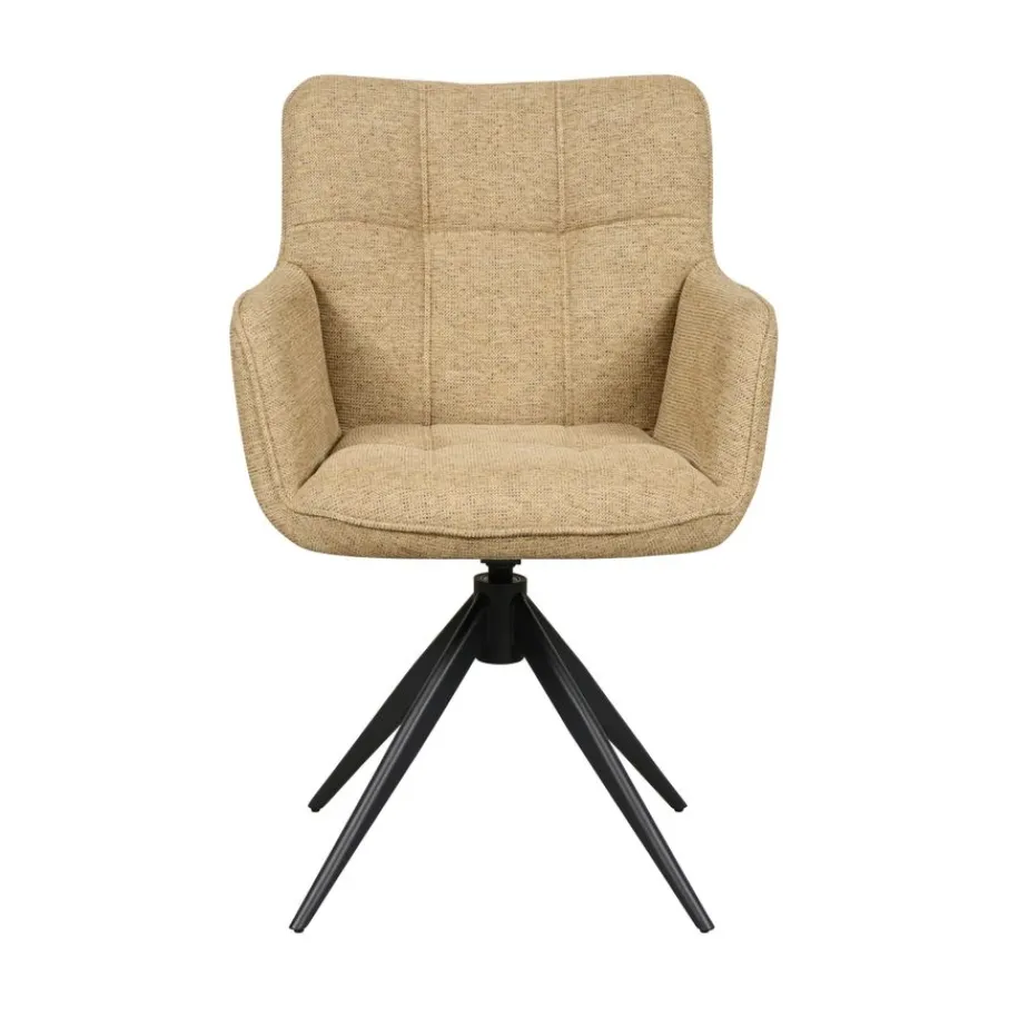 Ultiem zitcomfort staat voorop bij deze stoel. Dankzij de stevige polyether vulling in zowel de zitting als de rugleuning zit je altijd fijn, zelfs tijdens lange diners of werksessies. Maak je geen zorgen over de stabiliteit, de zwarte metalen poten zorgen voor een stevige basis. En daarbij is deze ook nog eens draaibaar, dat zorgt voor extra comfort.