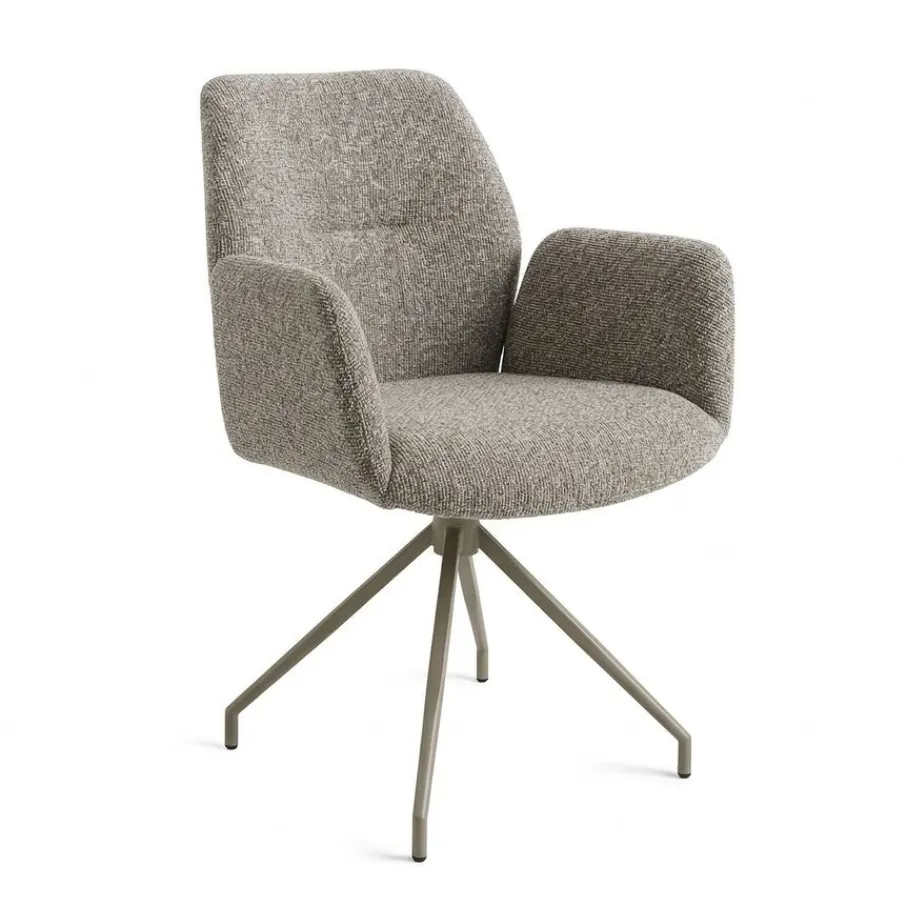 Maak je eetkamer compleet met de prachtige draaibare Borup eetkamerstoel. Deze armstoel is een echte blikvanger aan elke eettafel en brengt een warme, uitnodigende sfeer in huis. Het combineert een grijs/beige metalen onderstel met een robuuste stof, perfect om urenlang gezellig te tafelen met vrienden en familie. Met Borup haal je een stoel in huis die zowel qua stijl als comfort helemaal af is, zodat elke maaltijd een feestje wordt.