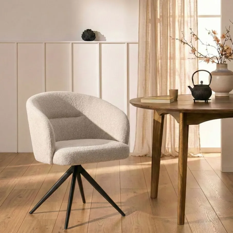 - Modern en elegant design: Met zijn opvallende ronde vormen en slanke zwarte poten voegt eetkamerstoel Connor een stijlvolle, moderne touch toe aan je eethoek.
