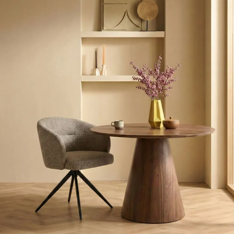 - Modern en uitnodigend design: De opvallende ronde vormen en knusse bekleding creëren direct een gezellige sfeer in je eethoek.
