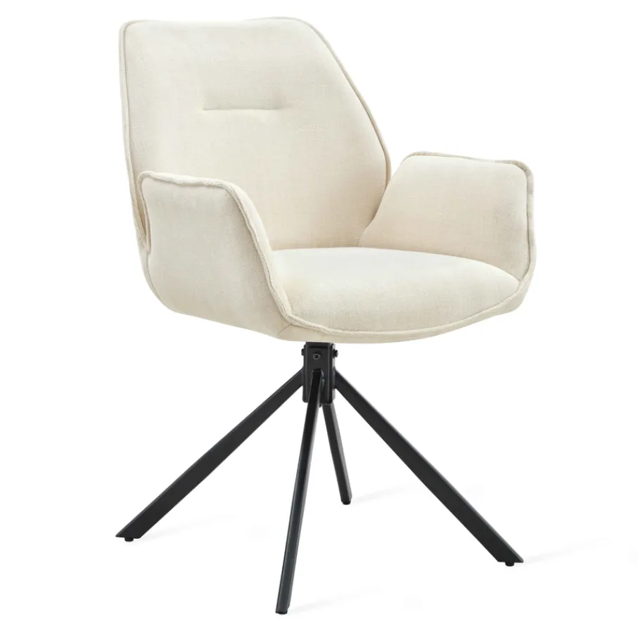 - Robuust en modern: De stabiele zwarte metalen draaipoot zorgt voor een stevige basis en geeft de stoel een eigentijdse look. Een echte blikvanger aan je eettafel!