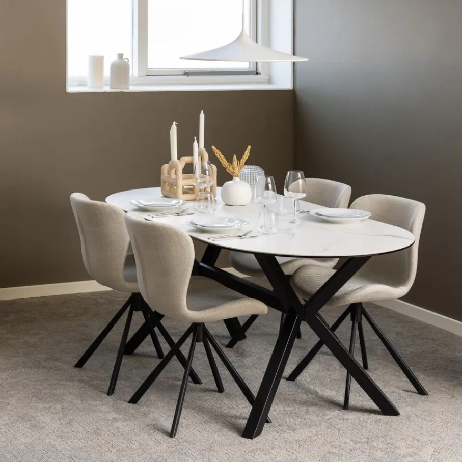 - Trendy en uitnodigend design: Met zijn moderne ronde vormen en strakke metalen onderstel geeft eetkamerstoel Isak jouw eethoek direct een frisse, eigentijdse look.