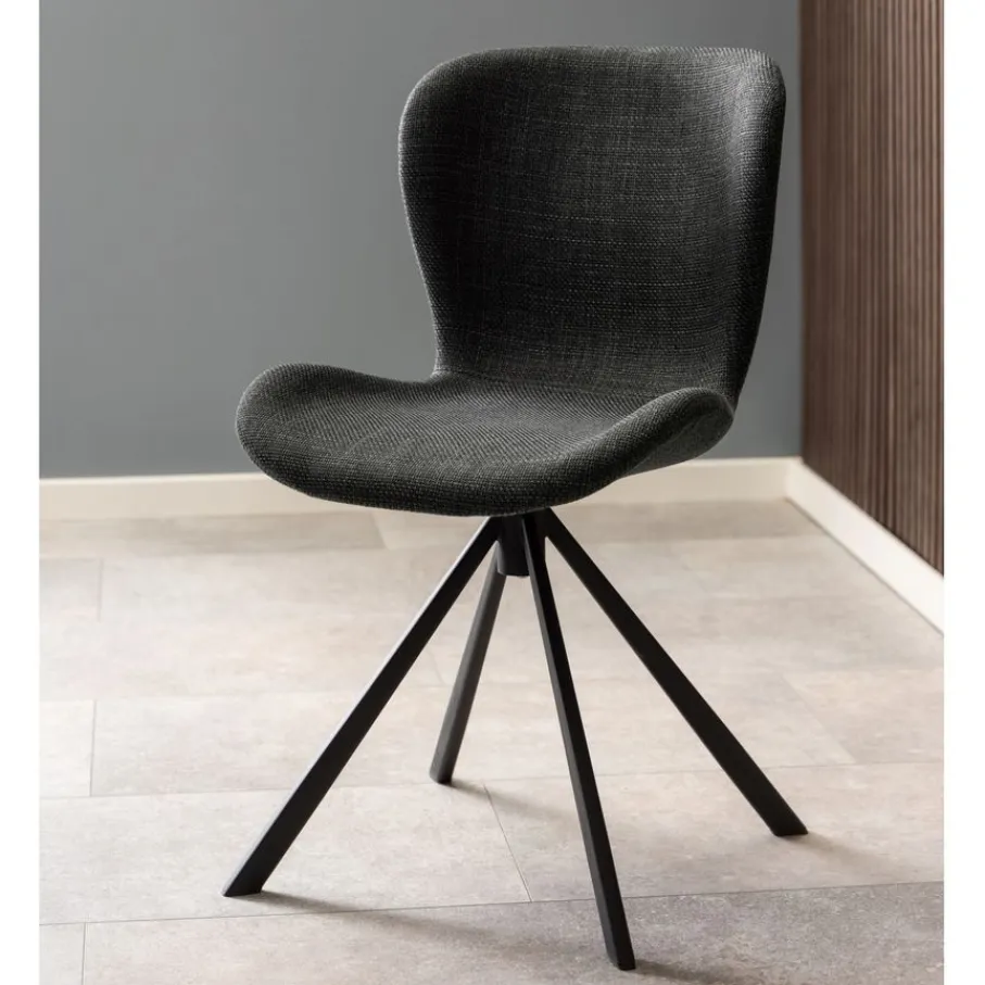 Deze draaibare stoel is bekleed met stof Basel, een materiaal met een mooie geweven structuur. Een slijtvaste en sterke stof van 100% polyester. De donkergrijze kleur is modern en stijlvol en combineert makkelijk.