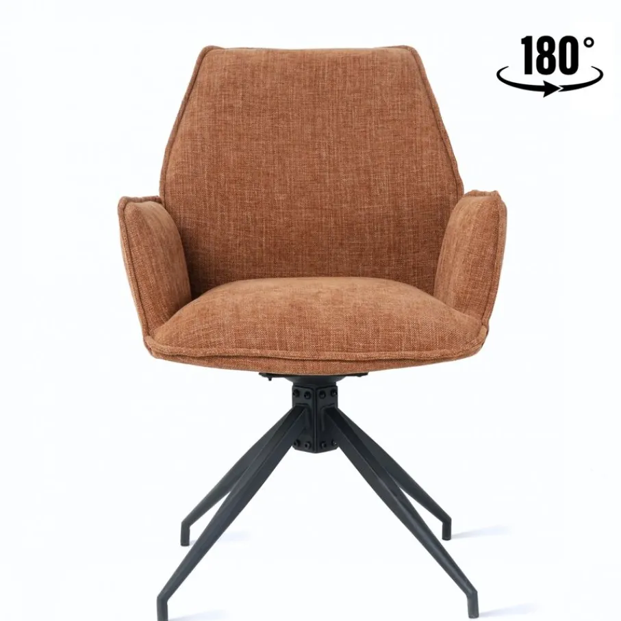 - Luxueuze textielbekleding: De roestbruine stof met fijne structuur biedt een warme en uitnodigende sfeer.