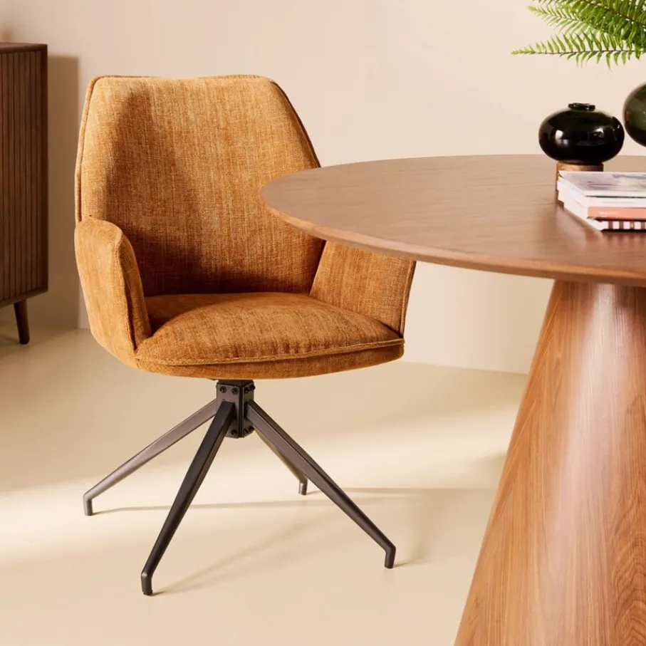 Eetkamerstoel Jerrel is ontworpen met oog voor comfort en kwaliteit. De stoel heeft een dik gevulde zitting en met een zitdiepte van 46 cm en zithoogte van 49 cm zorgt dat ervoor dat jij langdurig comfortabel kunt zitten. Met de draaibare zwarte poot biedt deze stoel niet alleen een stabiele zit, maar ook een praktische draaifunctie (180°) waardoor je gemakkelijk kunt bewegen. De maximale draagkracht is 125 kg.