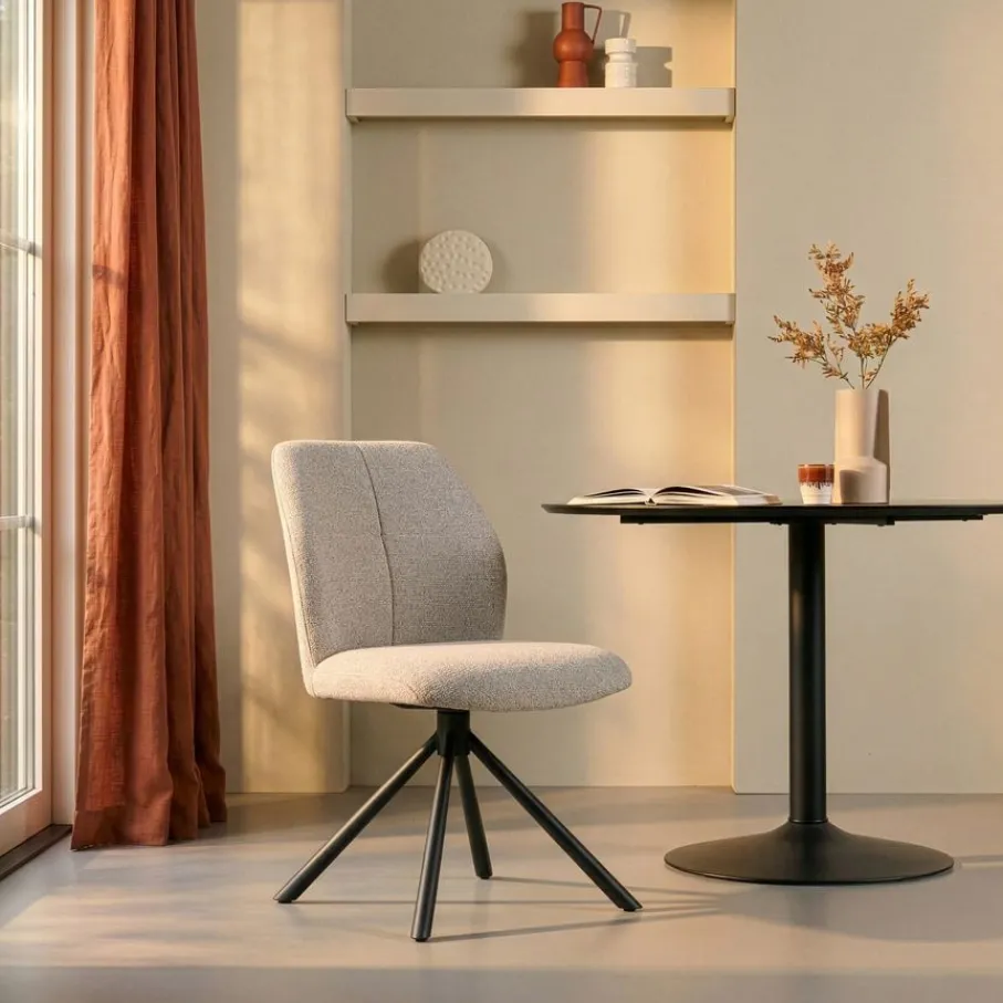 - Zachte en luxe textielbekleding: De heerlijk zachte structuurstof voelt niet alleen fijn aan, maar zorgt ook direct voor een warme en uitnodigende sfeer aan jouw eettafel.