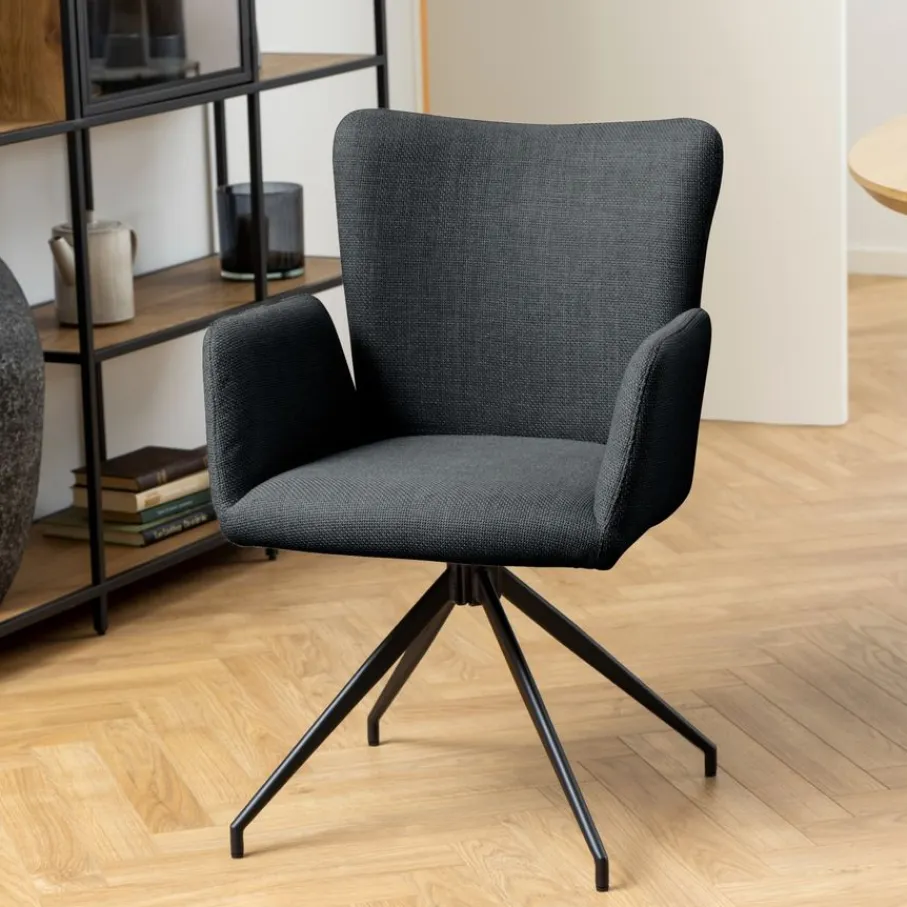 Comfort staat bij de Sverre stoel voorop. Bekleed met de luxe stof Basel, geniet je van een zachte en aangename zitervaring. De donkergrijze bekleding straalt tijdloze elegantie uit en past moeiteloos bij verschillende stijlen.