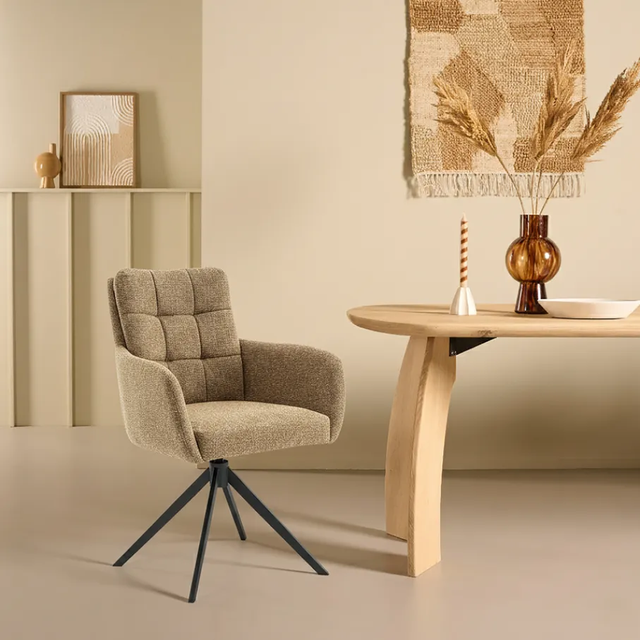 Ervaar ultiem comfort met de zorgvuldig ontworpen eetkamerstoel Swag. De stoel heeft een brede zit en hoge rug. De zitting en rugleuning zijn beide gevuld met duurzaam en comfortabel koudschuim. De stoel biedt niet alleen ontspanning voor je rug en zitvlak, maar ook consistentie dankzij het Automatic Return System dat ervoor zorgt dat de stoel altijd terugdraait naar zijn oorspronkelijke positie. Perfect voor dynamische ruimtes waar stijl en functionaliteit samenkomen.