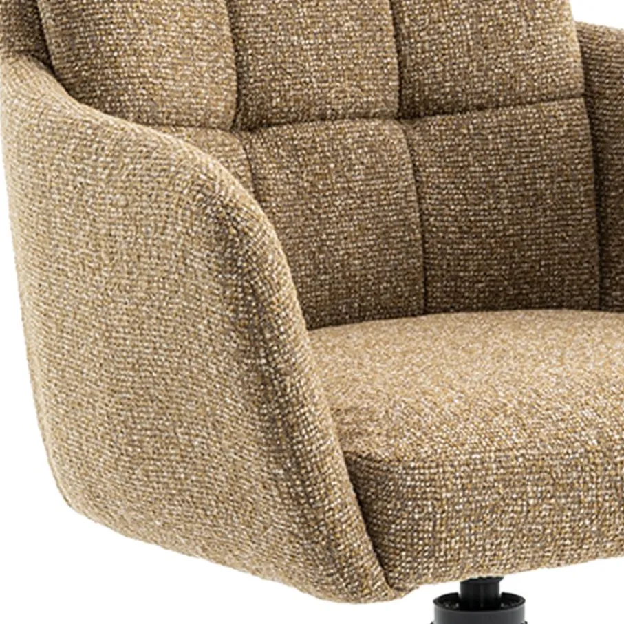 - Luxueuze bouclé bekleding: De curry kleurige stof biedt een rijke uitstraling en voelt zacht aan.
