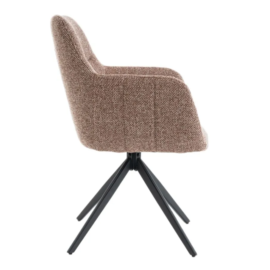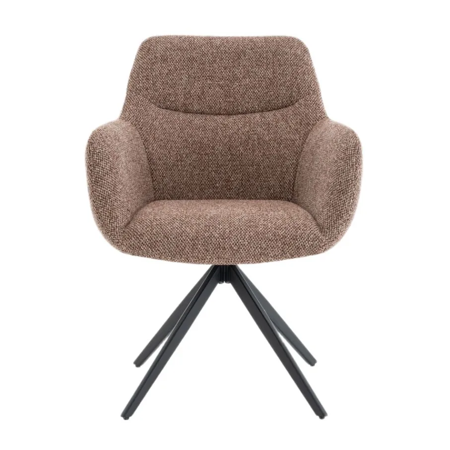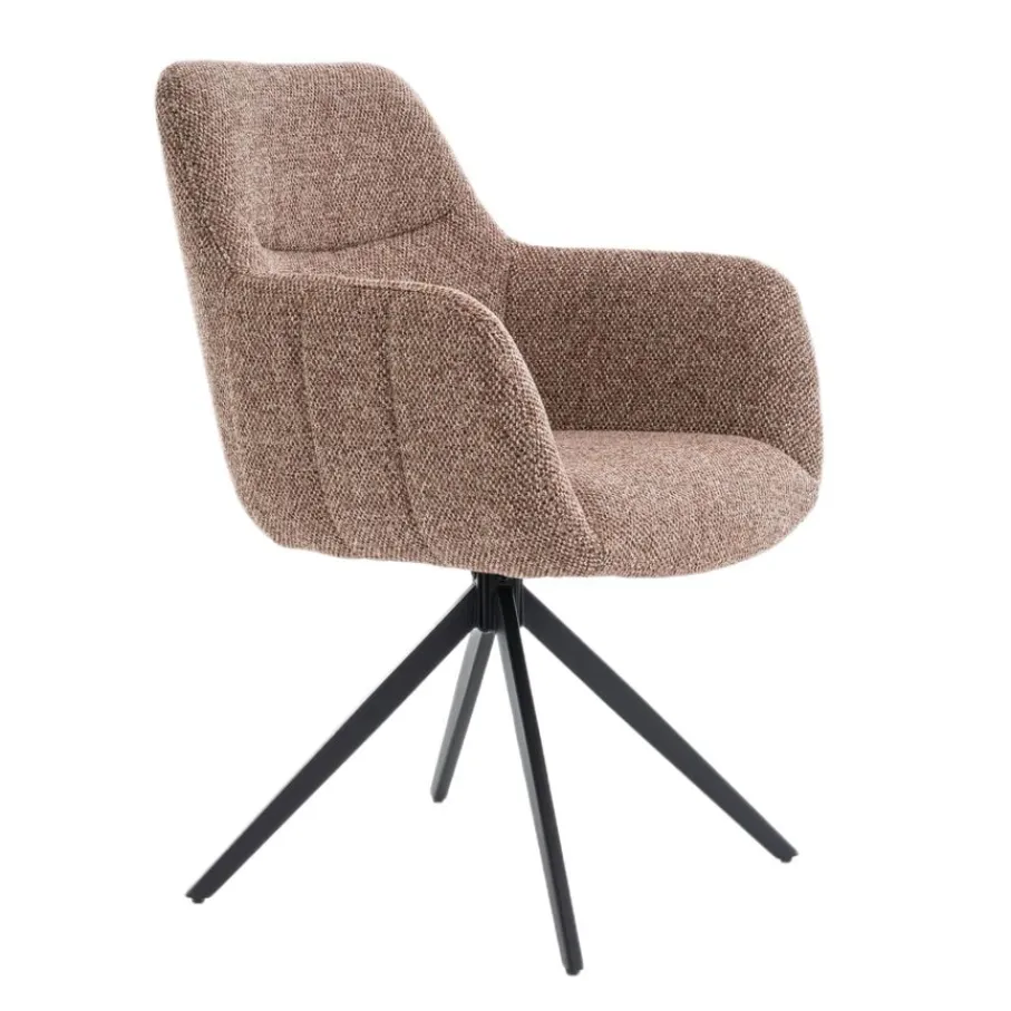 Met de draaibare eetkamerstoel Tibor geef jij je eetkamer direct een boost! Deze stoel, met een mooie structuurstof en stevig metalen onderstel, brengt direct sfeer en comfort aan je eettafel. Stel je eens voor hoe gezellig jouw maaltijden worden met familie en vrienden, lekker lang natafelen zonder je te vervelen. Door zijn moderne design en comfortabele zitting past deze armstoel perfect in elke eigentijdse eetkamer. Maak je huis compleet en geniet volop van elk moment met eetkamerstoel Tibor.