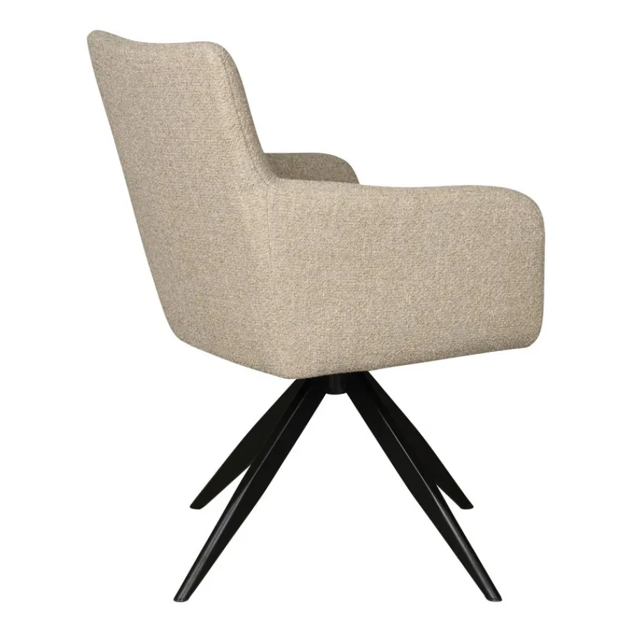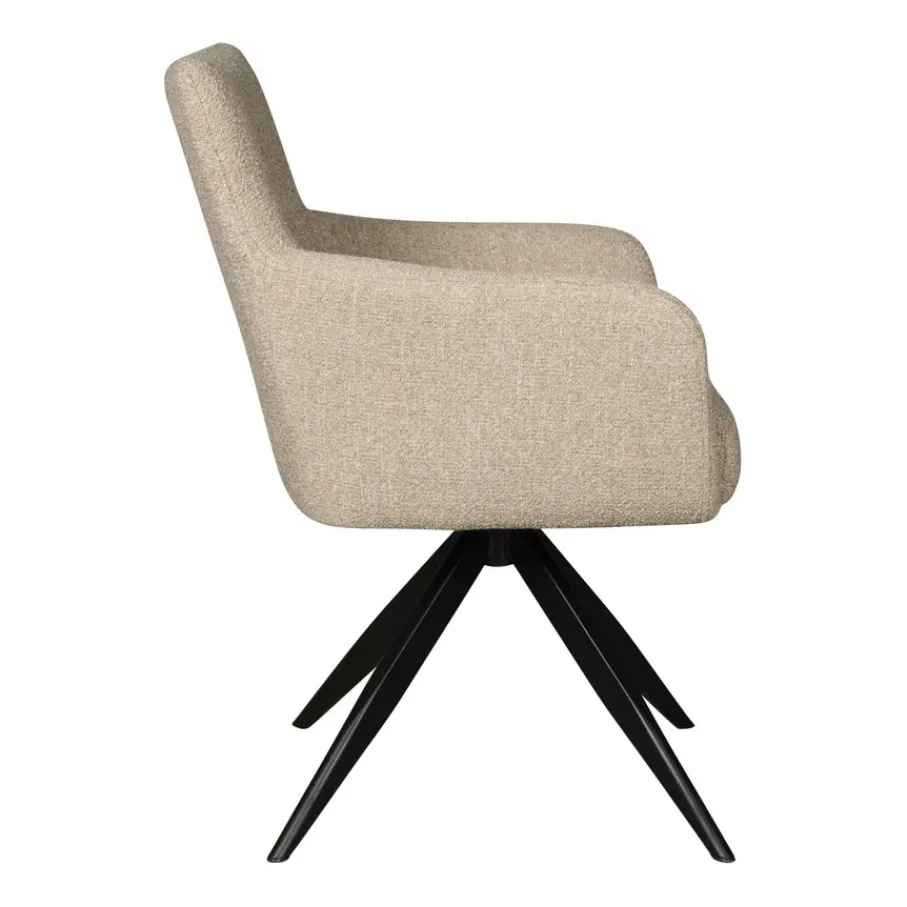 - Luxueuze bouclé bekleding: De rijke structuur van de stof voelt zacht en comfortabel aan, waardoor de stoel een stijlvolle uitstraling heeft.