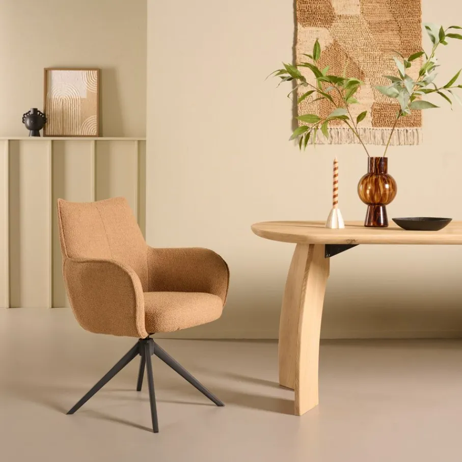 - Zachte en sterke bekleding: De luxe bouclé stof voelt heerlijk zacht aan en is bovendien supersterk en slijtvast. Zo blijft jouw stoel lang mooi!