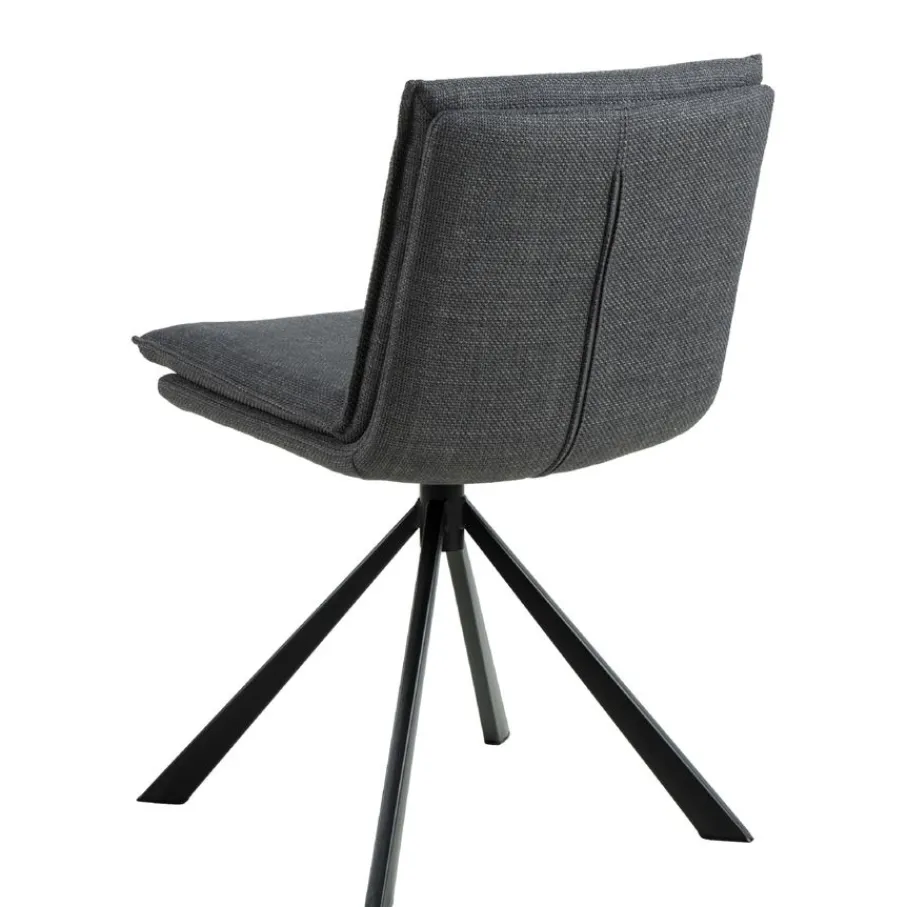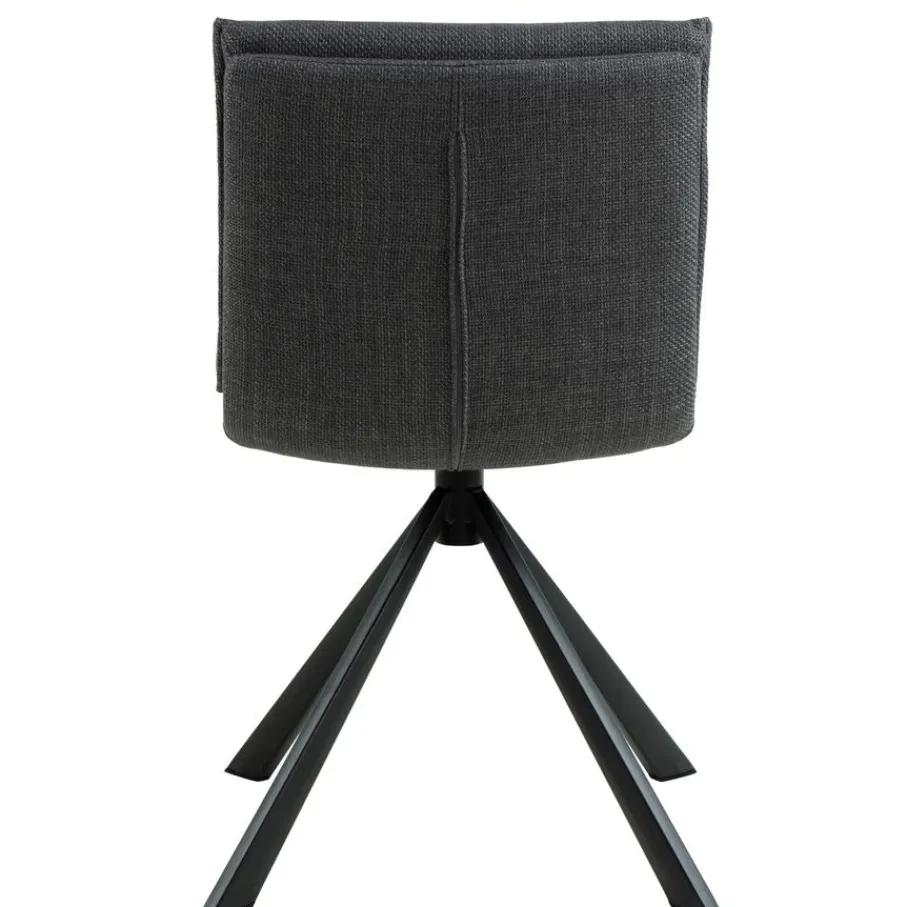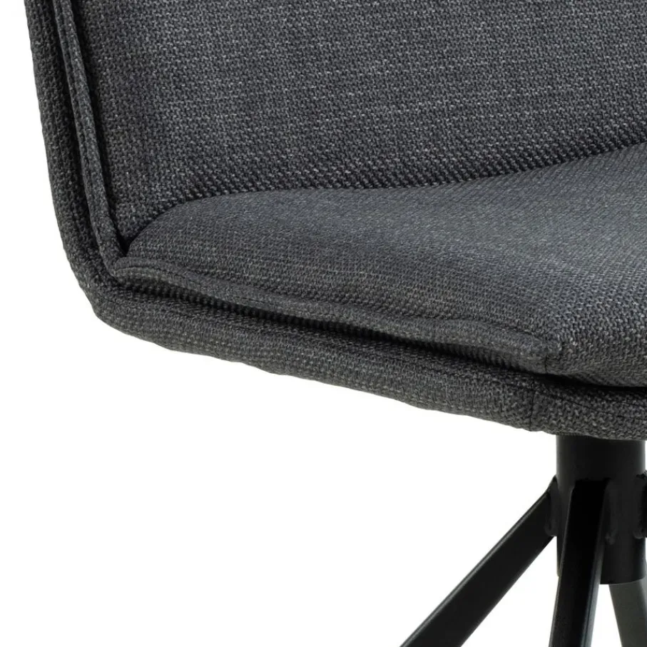 De eetkamerstoel is bekleed met stof Basel, een materiaal met een mooie geweven structuur. Een slijtvaste en sterke stof van 100% polyester. De donkergrijze kleur is modern en stijlvol en combineert makkelijk.