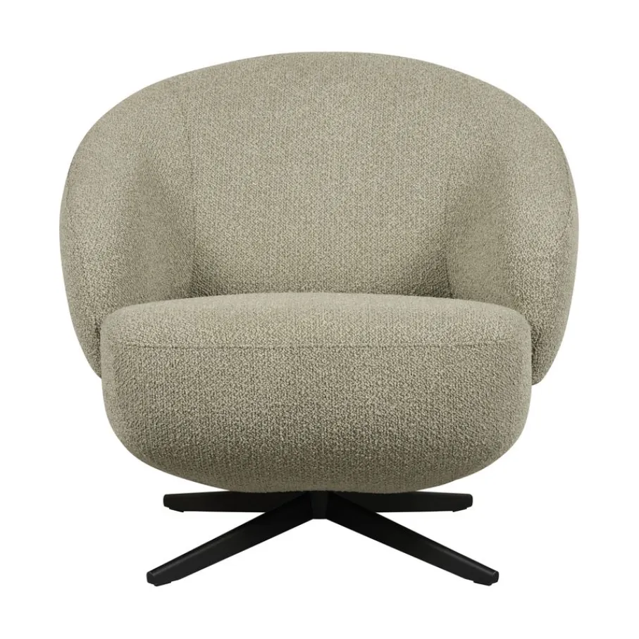 Draaifauteuil Chance heeft een ronde vormgeving en dat biedt een perfect zitcomfort. De zitting en rugleuning zijn gevuld met hoogwaardig polyetherschuim, wat zorgt voor een stevige, maar zachte ondersteuning. Met de comfortabele zitdiepte van 56 cm en zithoogte van 44 cm nodigt deze fauteuil je uit om urenlang te blijven zitten. De zwarte poot zorgt ervoor dat Chance volledig om zijn as draait, maar dan ook weer automatisch terugdraait, Dat zorgt altijd voor de perfecte stand.