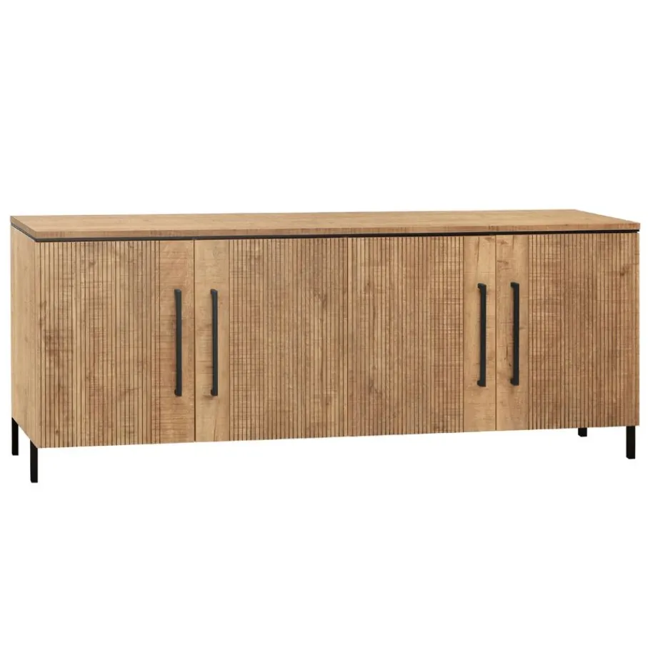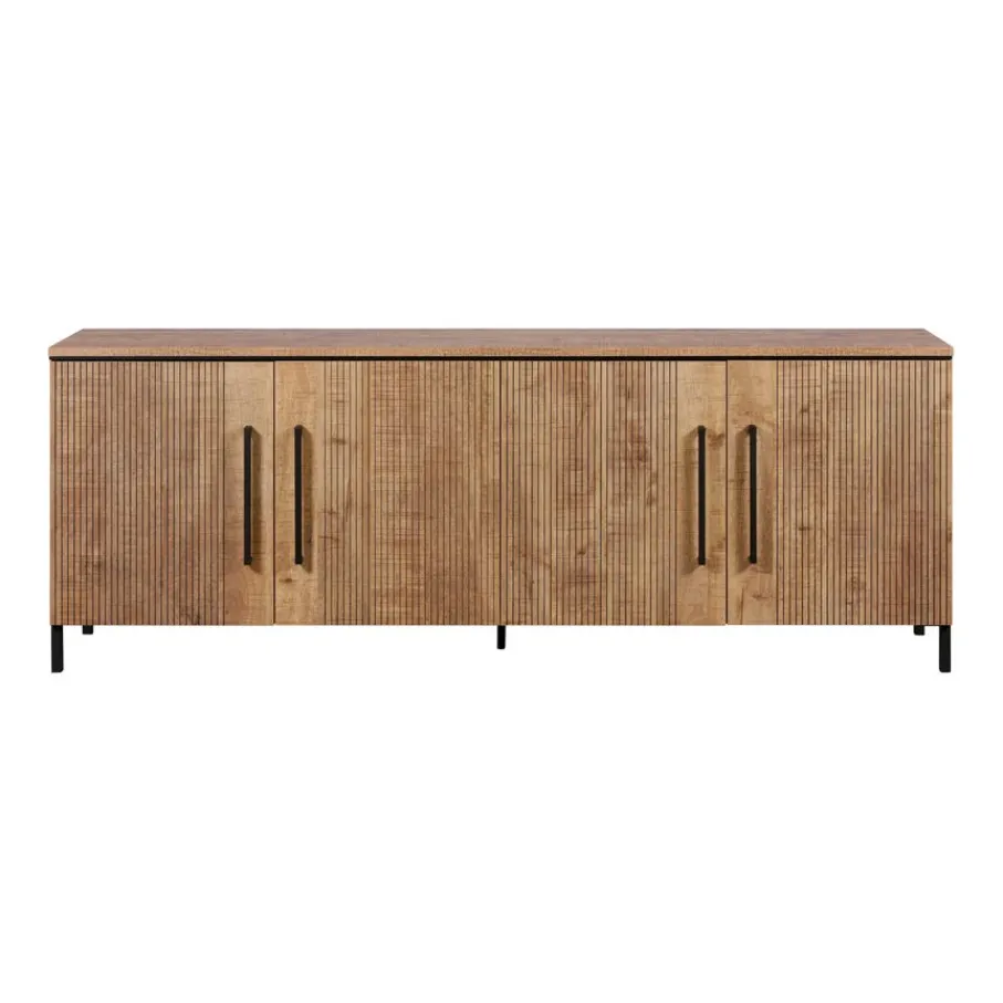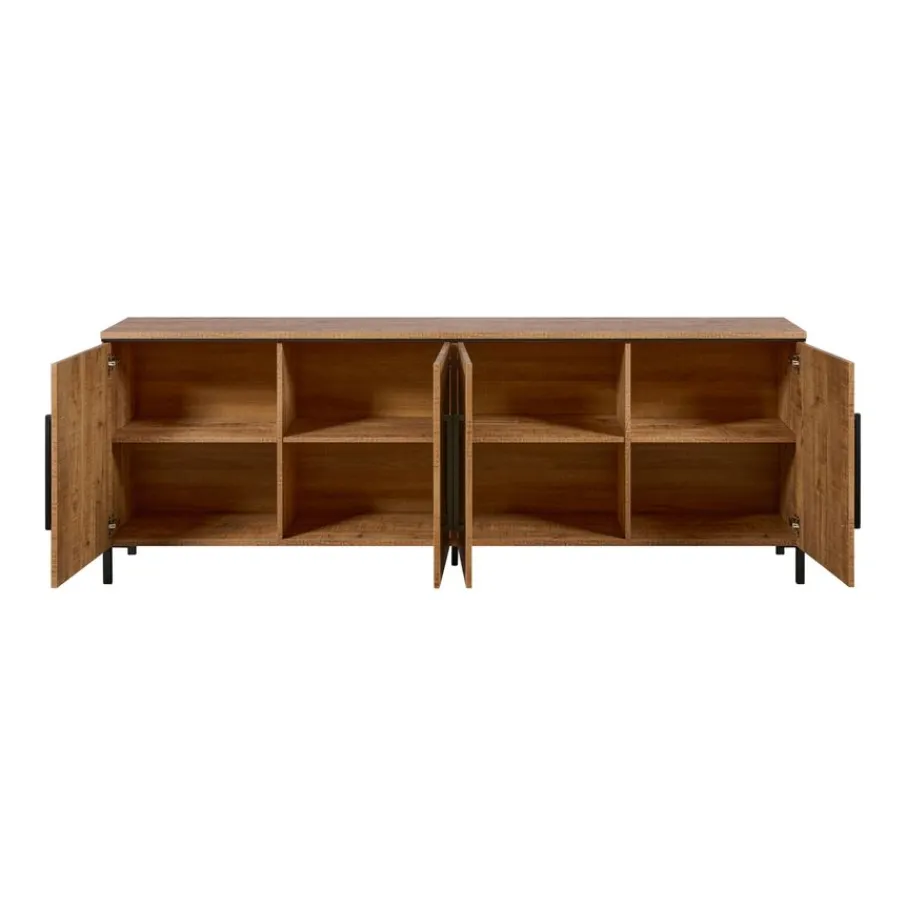 Het dressoir heeft in totaal 4 deuren. De kast heeft 2 ruime opbergvakken met voor ieder vak 2 gespiegelde deuren. Elk vak heeft een plank erin, ter verdeling van de ruimte. De deuren zijn voorzien van softclose, hierdoor sluiten ze zacht en soepel. Ze hebben lange zwart metalen handgrepen.