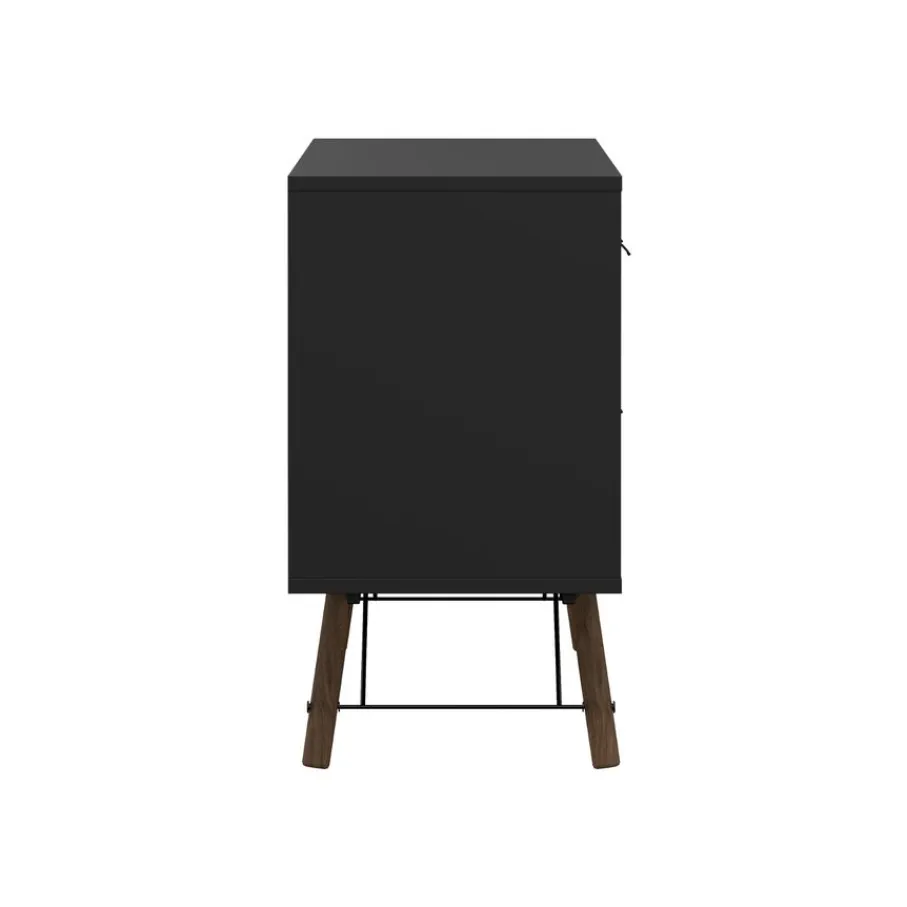 Deze kast beschikt over twee deuren en twee handige lades, waardoor Denver ruime opbergmogelijkheden biedt. De metalen handgrepen zorgen voor een speels accent.