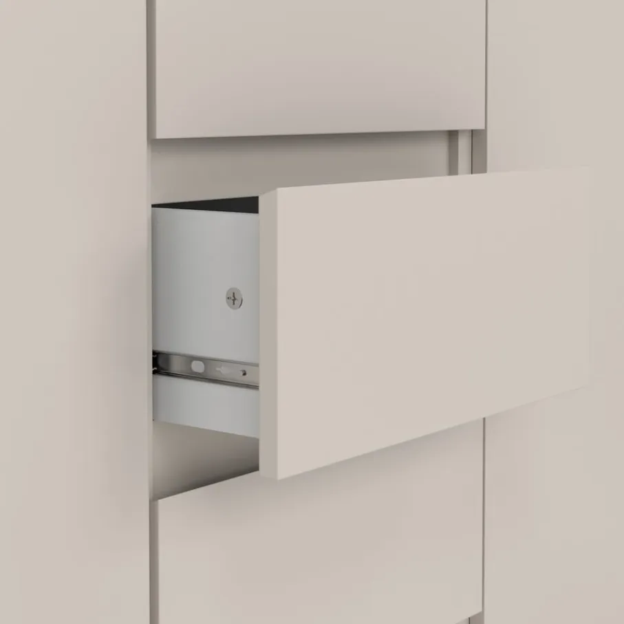 - Geniet van ultiem gebruiksgemak door de soepele ladegeleiders en de stijlvolle afgeschuinde fronten, waarmee je de deuren en lades moeiteloos opent.