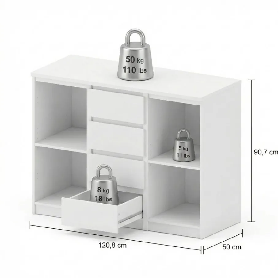 - Afmeting 120,8×50 cm en 90,7 cm hoog