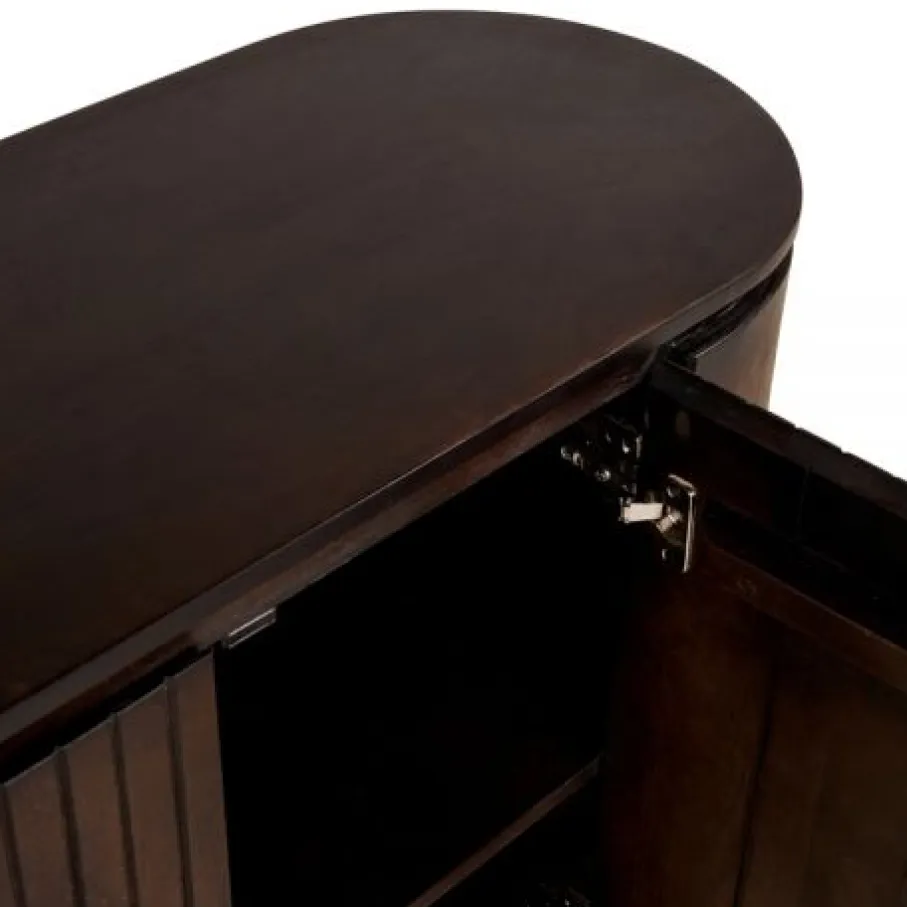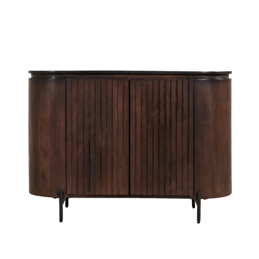 - Geef jouw interieur een unieke en persoonlijke touch dankzij de trendy ronde vormen, het stijlvolle ribbelpatroon op de deuren en het elegante ‘zwevende’ blad.